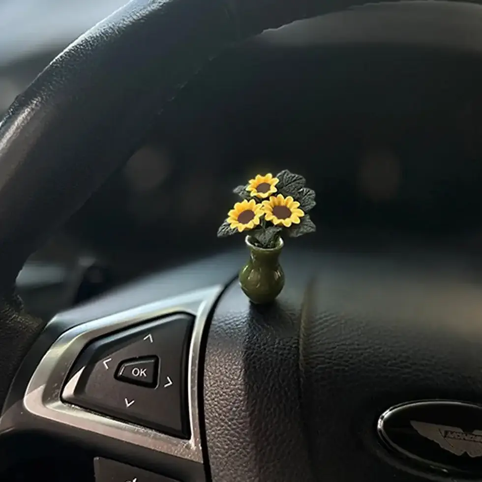 Cute Car Mini Sunflower Vase Ornaments Interior Decoration Center Console Decora