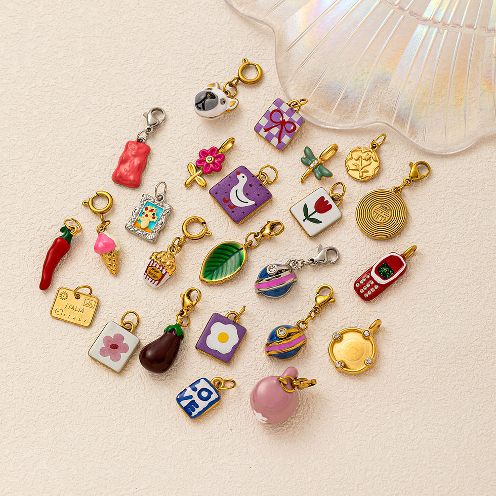 Stainless Steel 18K Gold Plated Enamel Pendants Cute Charm Accessories for DIY J