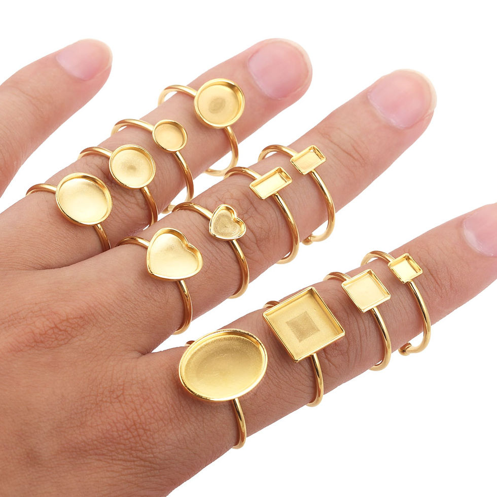 10pcs Adjustable Stainless Steel Open Ring Settings Blank Base Bezel Cabochons R