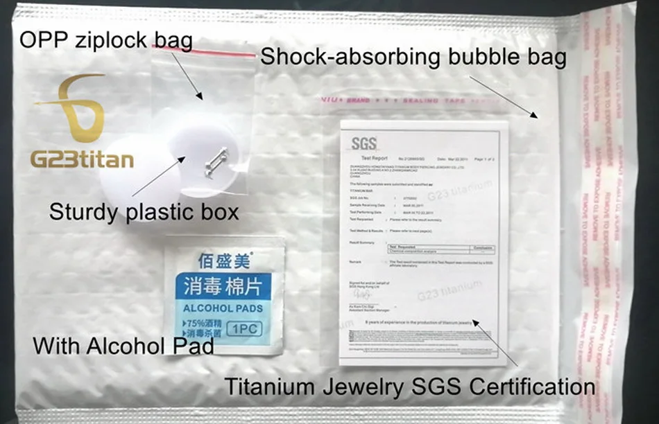 1. Take the earrings on your finger, feel the weight, titanium alloy is much lighter than steel and other alloy, the weight can't lie.2. See the color, the natural color of titanium is grayish and darker.3. If you still not belive, hit the earrings with a hammer with appropriate strength. If it is aluminum alloy, it will be broken, if it is G23 titanium alloy, it will not deform.Why choose G23 titanium alloy for body piercing jewelry?