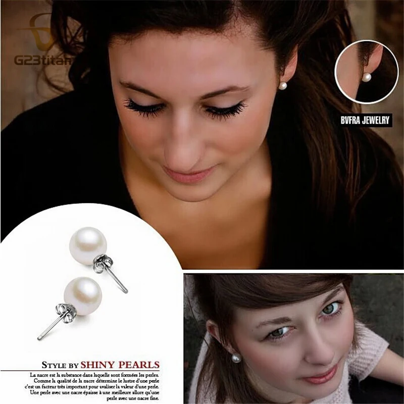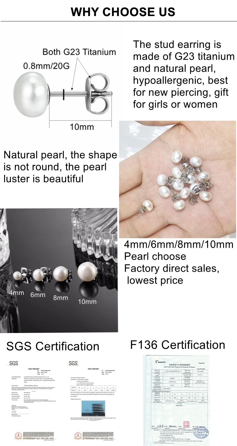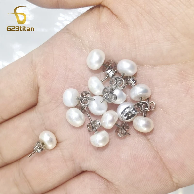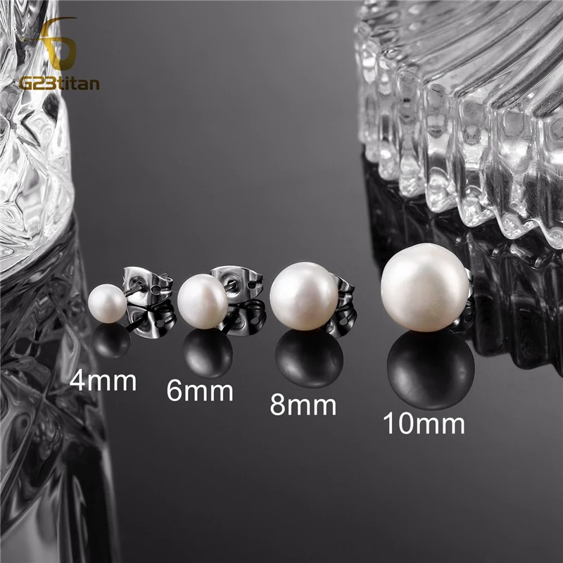 4-10mm Natural Pearl Earrings Hypoallergenic Titanium Stud Earring for Children Women Men Ear Lobe Piercing Jewelry Girls Gift