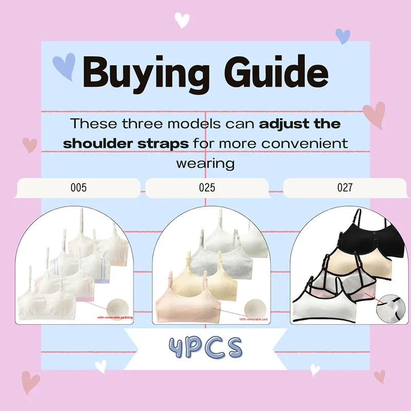 Size introduction: Normally lower circumference tlie 31cm*2. Maximum lower circumference stretch 39cm*2. Bra height 27cm(Including shoulder strap length). Suitable for girls from 8 to 16 years old.