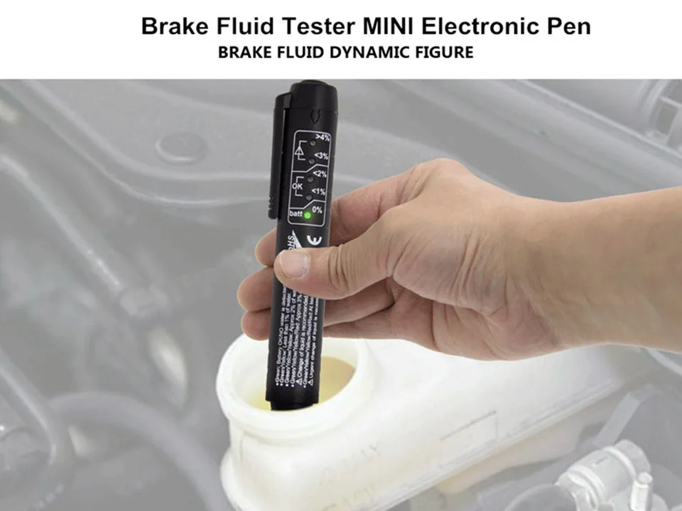To Check Fluid Quality:Press the button for power on, green LED will light up.Insert the tester into reservoir for a second , then the results will be indicated correctly by LEDs.Auto power off .