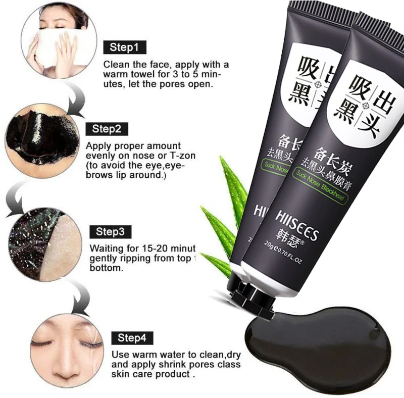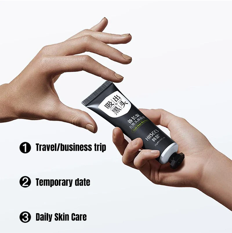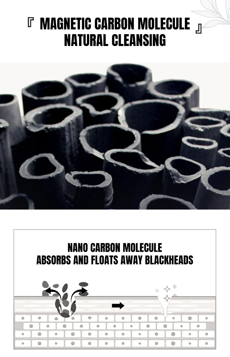 Small molecular carbon powder, releases magnetic adsorption force, floats away excess impurities and dirt from the nose, removes blackheads and radiates clean and tender skin~