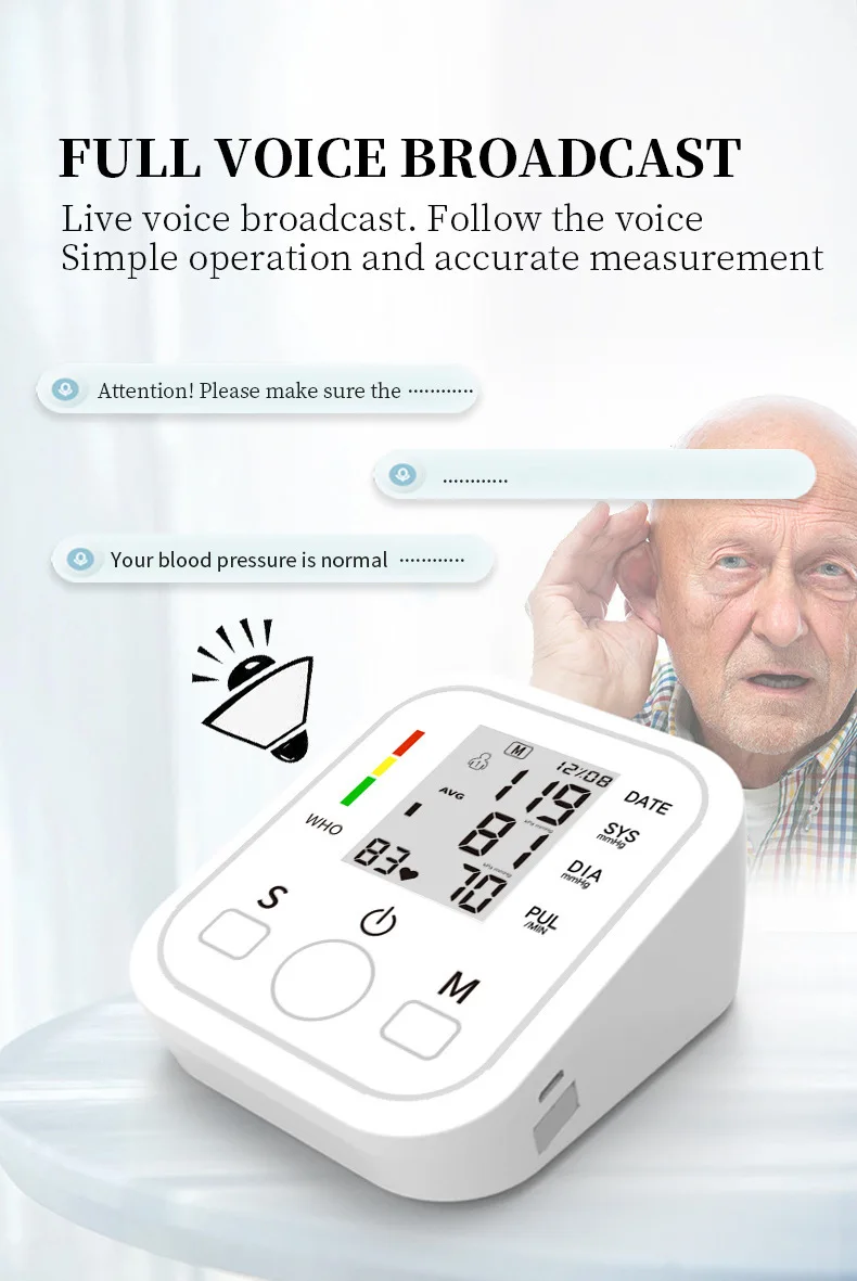 Product Name: Blood Pressure Monitor Kit Upper Arm Digital Sphygmomanometer BP Measuring Meter Automatic Tonometer Medical Device Pulse Health