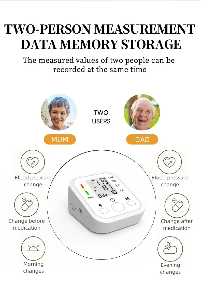 Supports 2 user profiles, each with up to 90 sets of historical readings. Ideal for couples or caregivers who want to track readings separately over time.