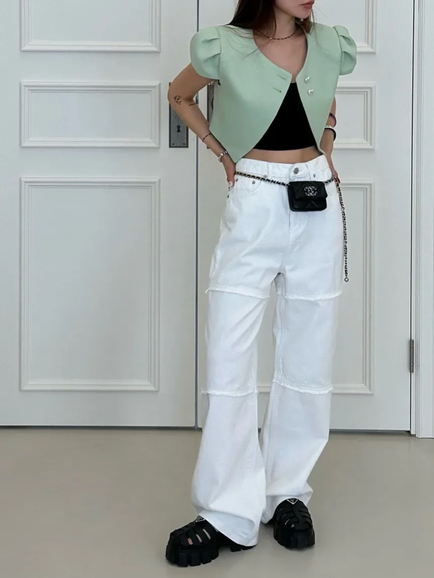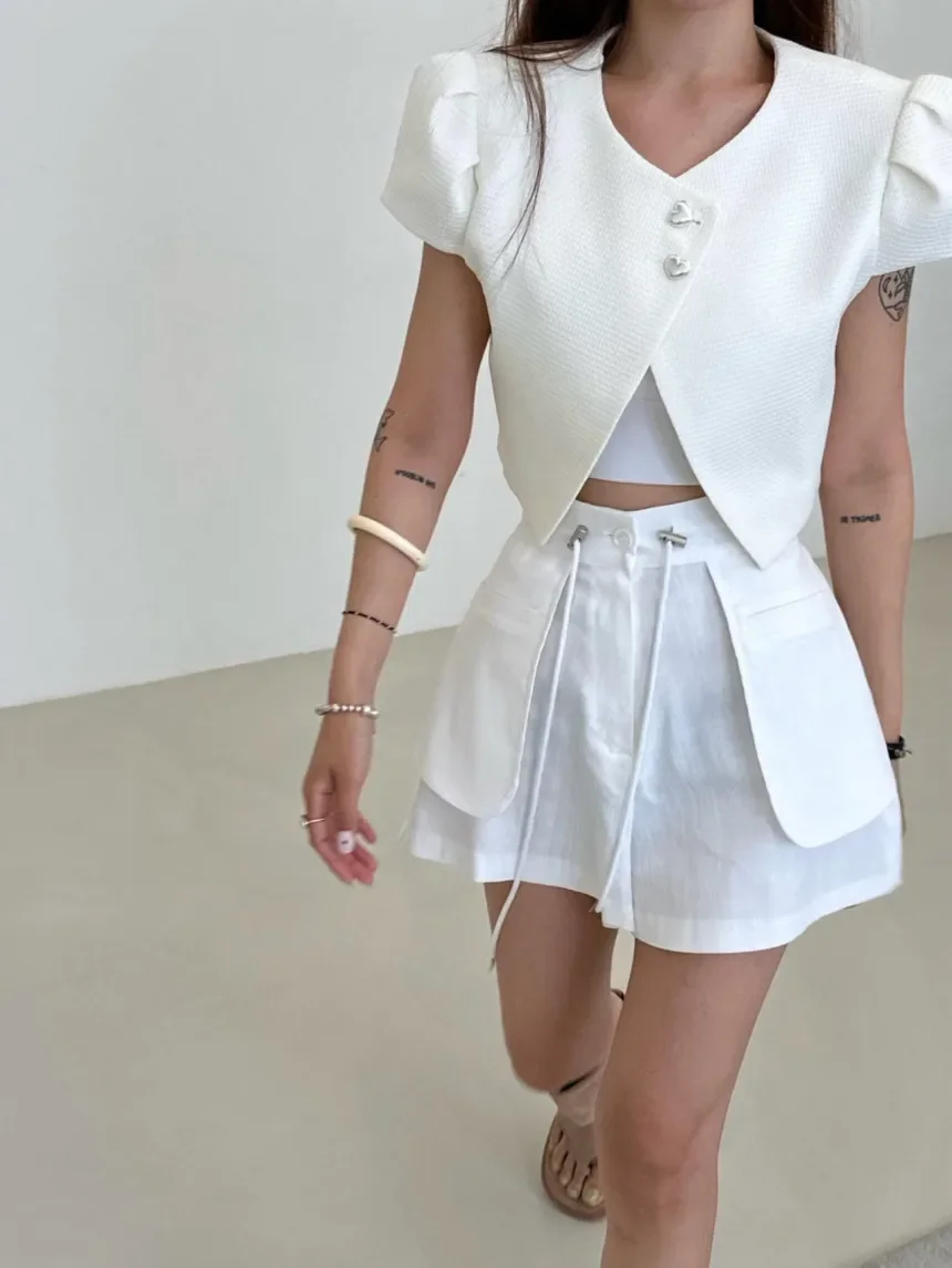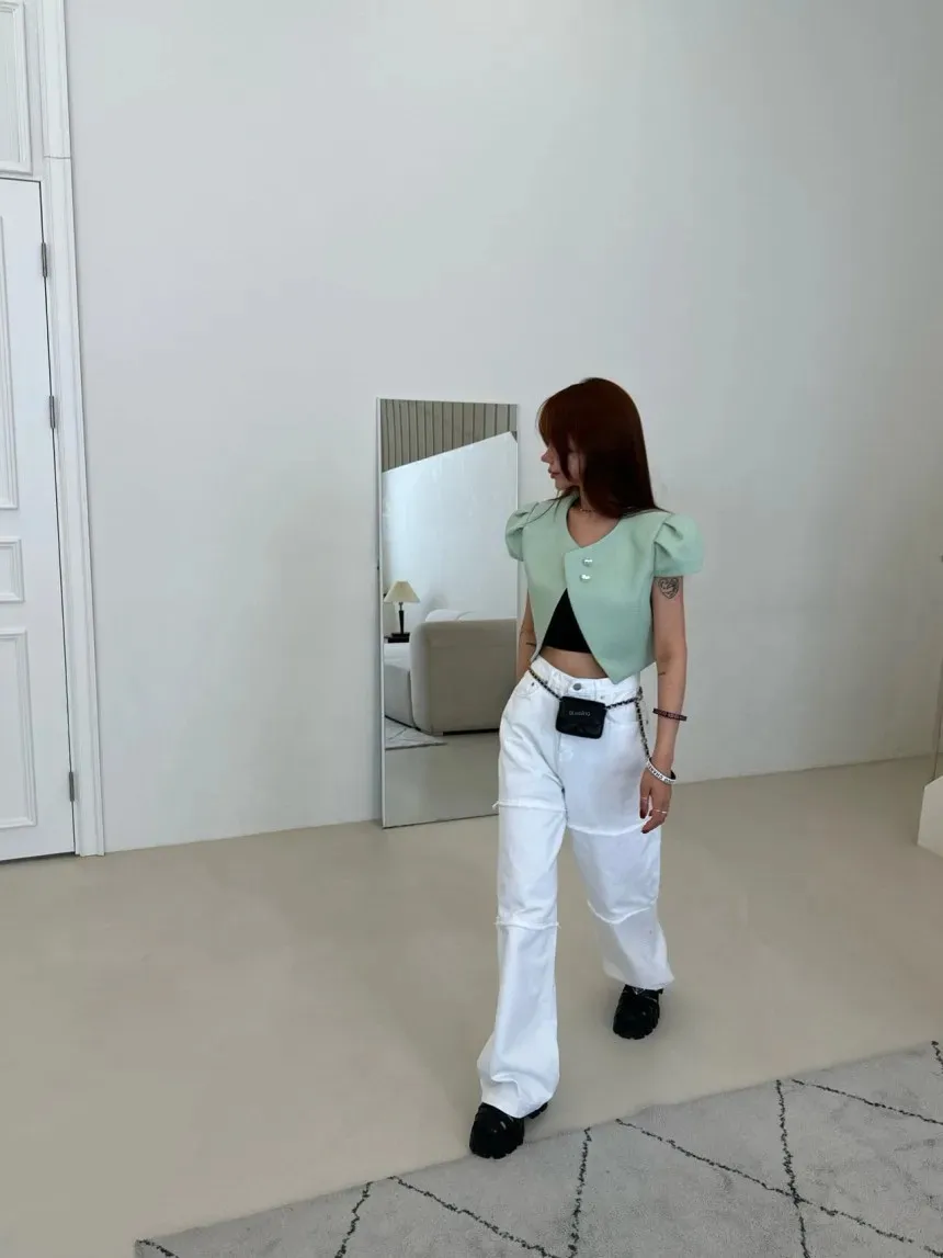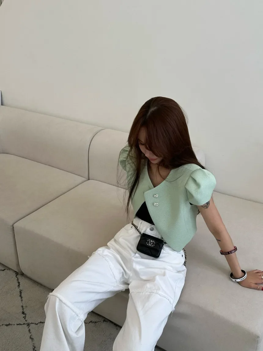 • Chic French Design :This women's short coat features a chic French design, making it a stylish addition to any wardrobe. Its heart-shaped button bubble sleeve adds a touch of whimsy and charm.