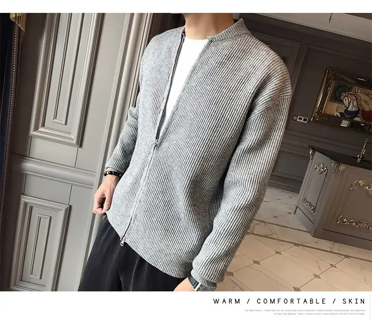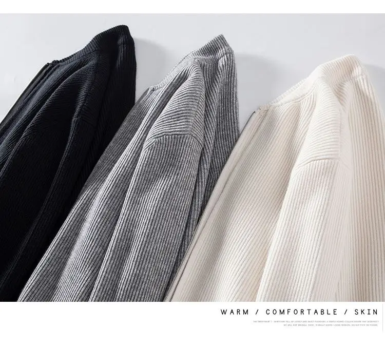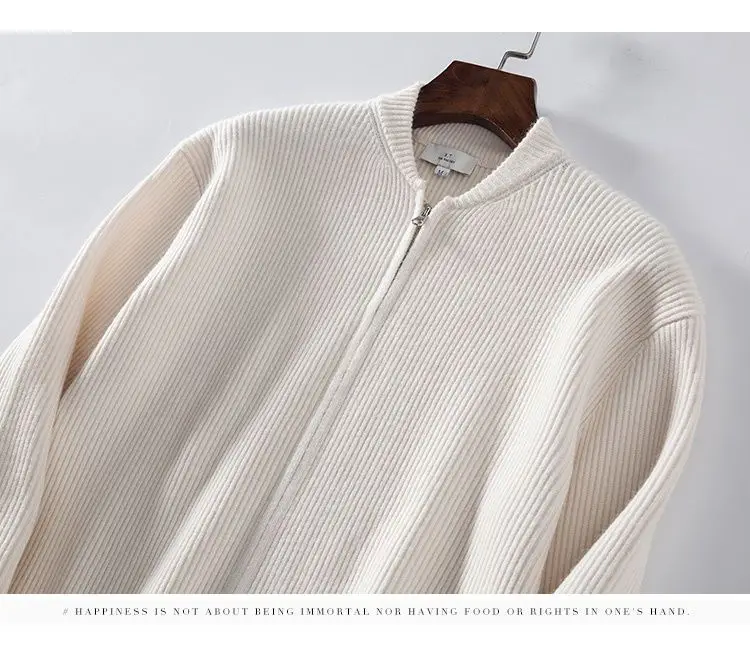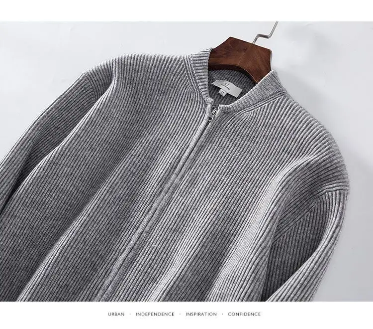 The sweater features a double-zipper design, adding a modern twist to the classic cardigan style. It's a versatile piece that can be dressed up or down.