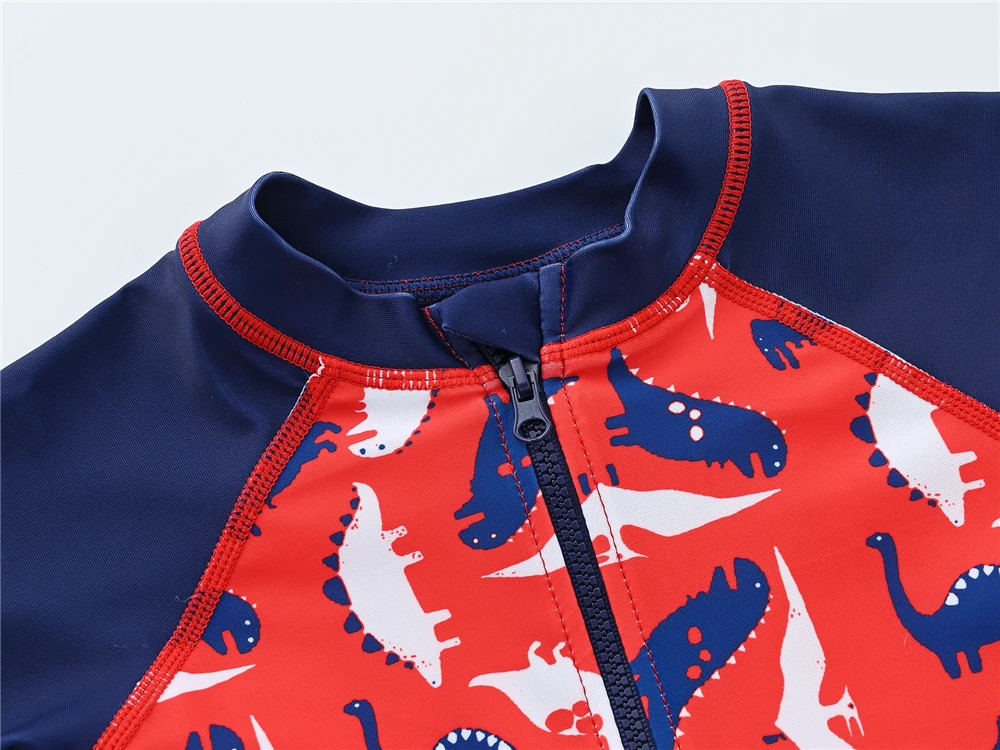 Honeyzone Kids Boy Swimwear Short Sleeve Summer Beach Surfing Clothing 1-7 Year Dinosaur Design Child Swimsuit