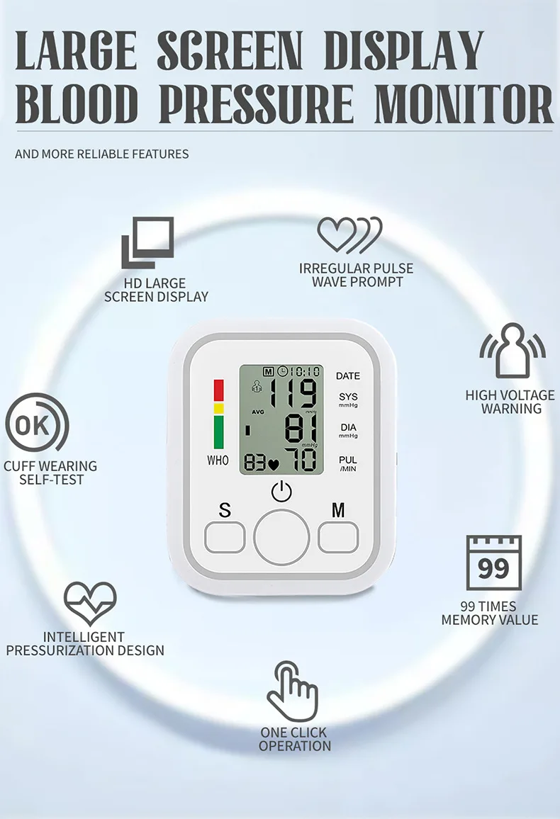 SPECIFICATIONSBrand Name: CRXYJChoice: yesOrigin: China MainlandMedical Care Blood Pressure Monitor Upper Arm Automatic Tonometer Digital Englis 163.32﷼ سعر عادي81.66﷼سعر البيعColor*تحديدالكمية*أضِف إلى العربةاشترِ الآن