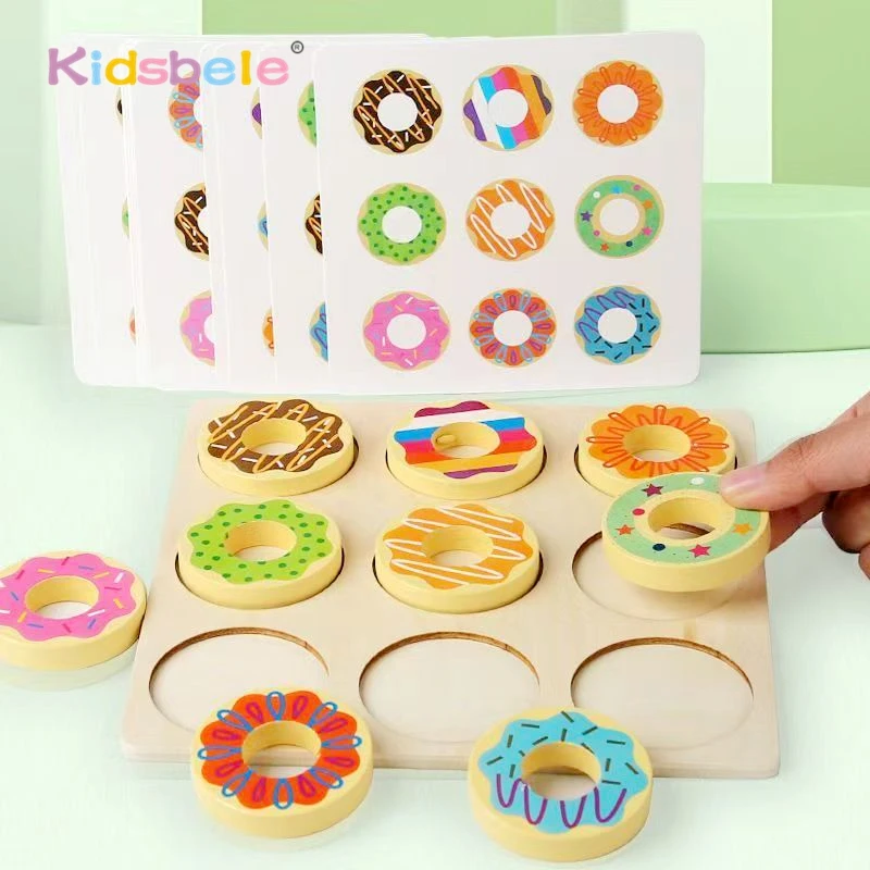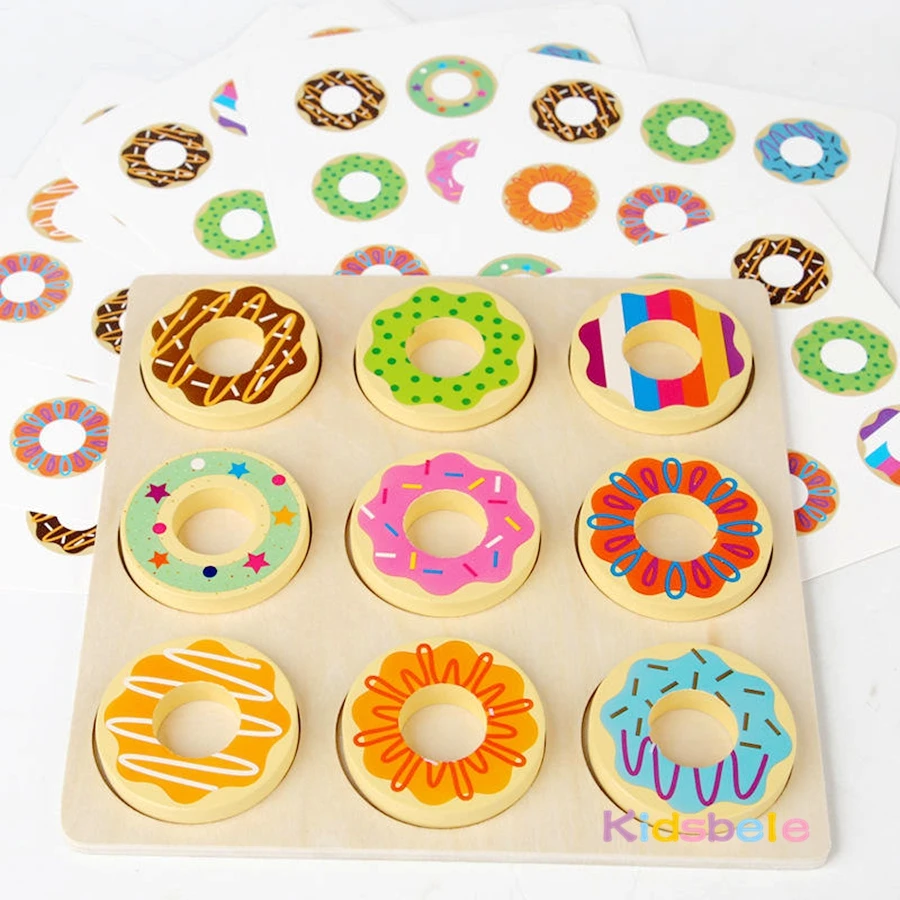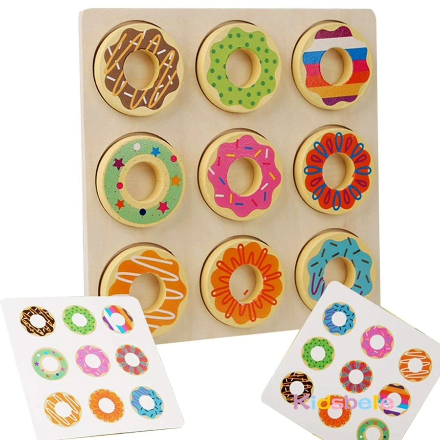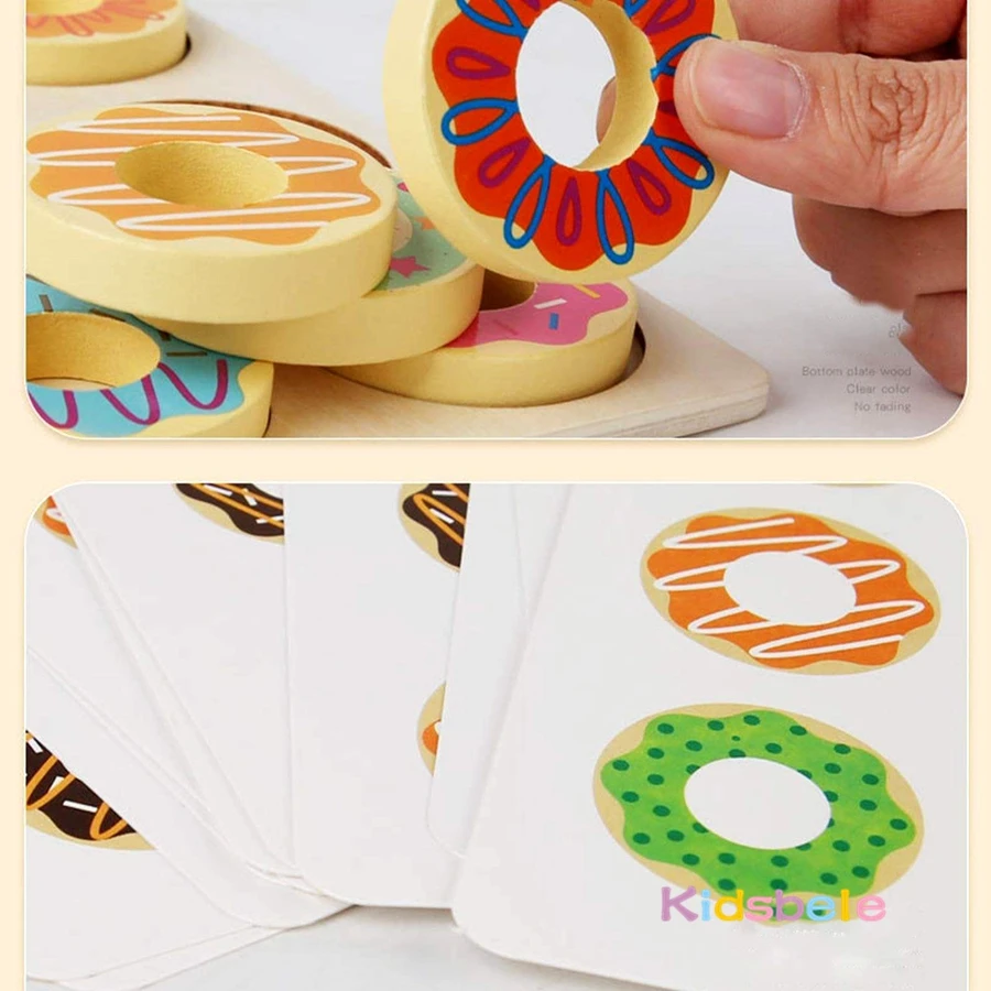 Montessori Color Wooden Donuts Matching Toy Thinking Training Puzzle Sorting Game Early Learning Parent-Child Interactive Toy