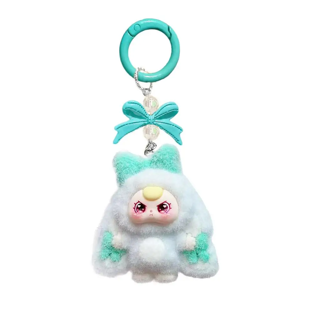 New Cute Flocked For Baby Three Bag Pendant Ornament Colorful PVC Keychain Backpack Decoration Lightweight Flocked Bow Design