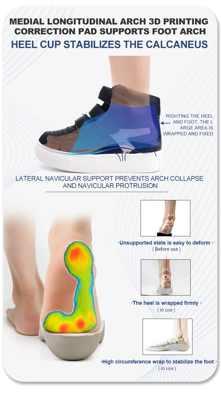 feature1: To prevent and correct children's flatfoot,varus foot, valgus foot, supinator,pronator, clubfoot, X/O leg foot etc.