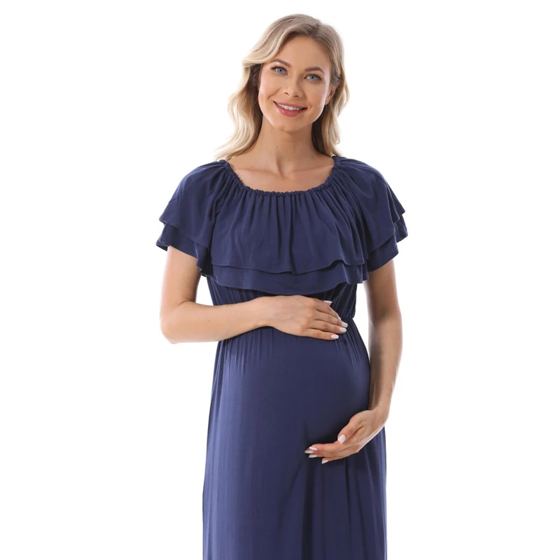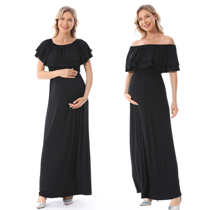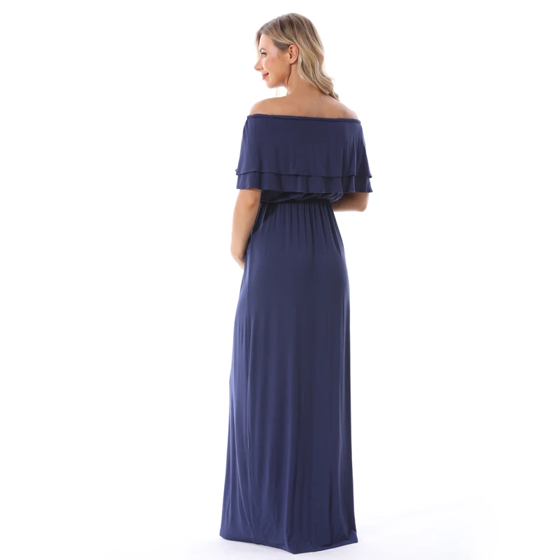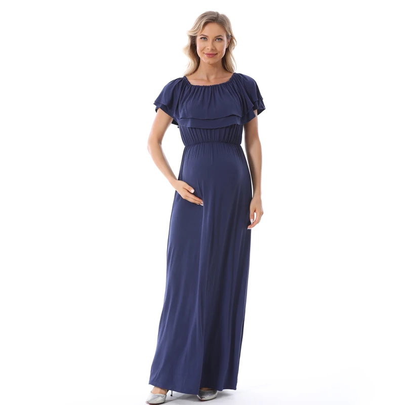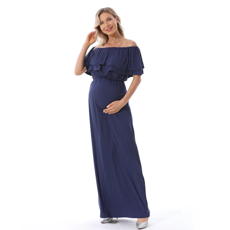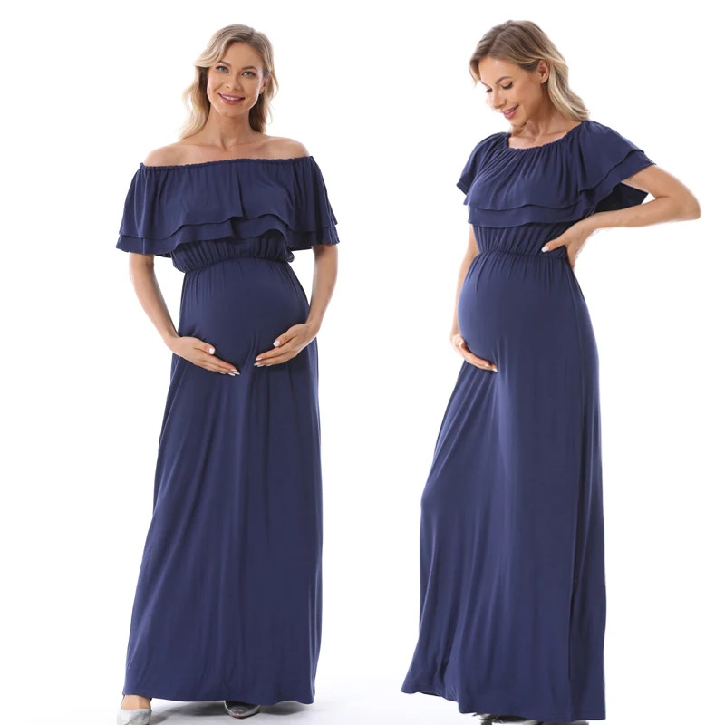 1). Descriptions: Ruffles Maternity Long Dress Off Shoulder Maternity Dress Pregnancy Breastfeeding Dress Mama Photo Shoot Pregnant Clothes2). Material: 95%Modal, 5% Spandex.3). Size available:S,M, L, XL,XXL,XXXL.4). Colors: Black,Blue.5). MOQ: 1pcs.6) Feature:Soft Modal Fabric,Easy for nursing,Fashion Style, high elasticity, softness, comfortable, breathable Sweat-absorbent, wearing Relax.Your OEM Designs are welcomed.7). Ship date: 24 hours after order is confirmed.Pls. feel free to Contact us if you want to Mix order other different items.Payment: By Paypal, OR T/T.Shipping:1).Goods will normally be despatched within 3 working days after receiving your payment.2).Normally orders will be shipped by EMS or DHL or UPS,pls. inform us in advance if you need other shipping way.3).The tracking no. will be written on the website for your tracking after despatching,pls. allow 5-7 working days for your shipping by UPS or DHL,7-10 working days for EMS shipping.4).The buyers are responsible for import duties and local taxes by their country if any.5).Please make sure the Ship-To address you writting in your order is correct.Return Policy:1).We provide 30 days warranty for this item,but we won`t accept return of any items for damages after use or damaged factitiously.2).Pls. contact us by email and describe the damages together with pictures.Pls. respond within 2 days after yours receipt if any damage.3).Pls. allow little color difference due to different camera or light environment.4).We'll proceed you