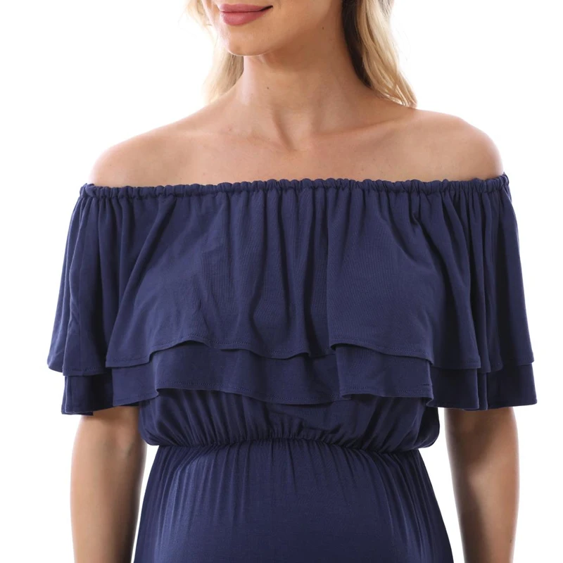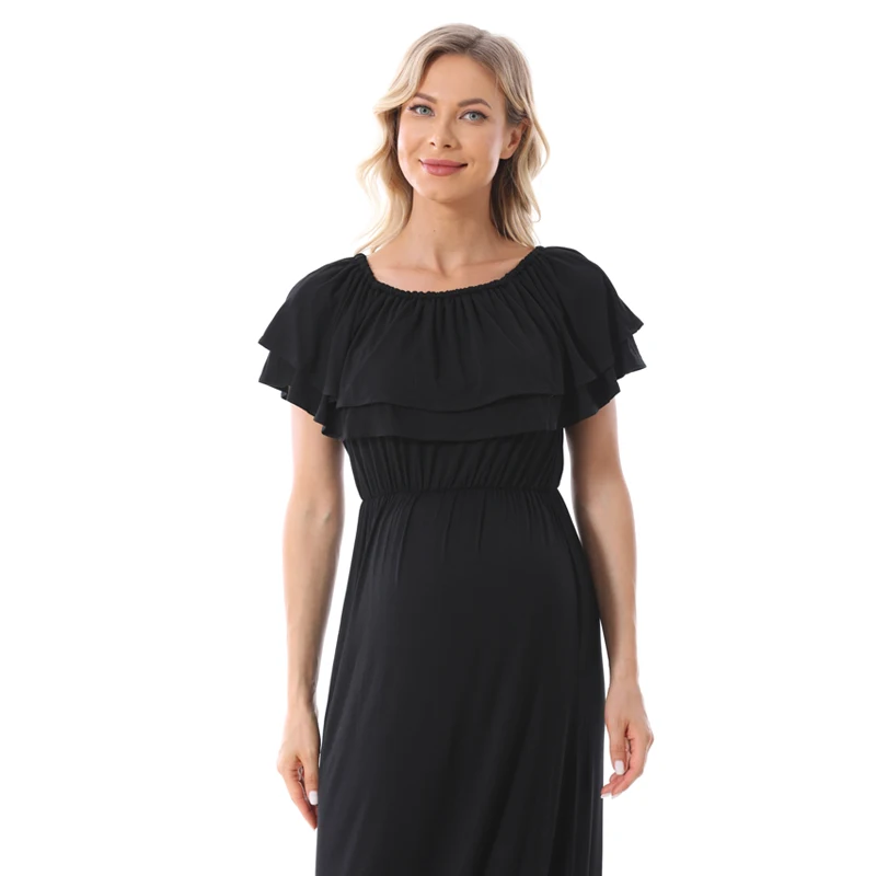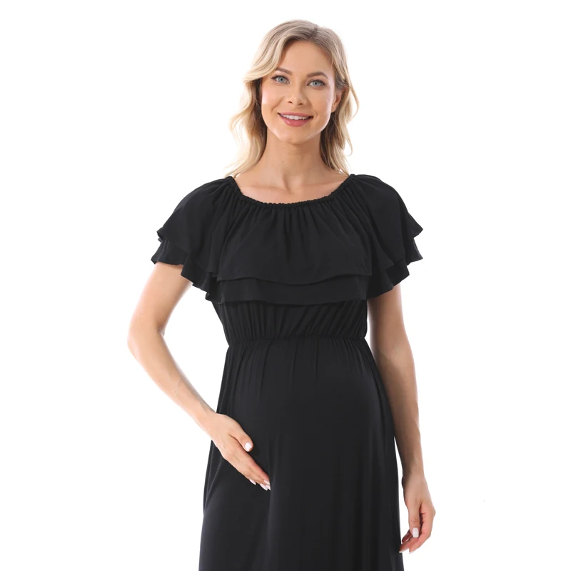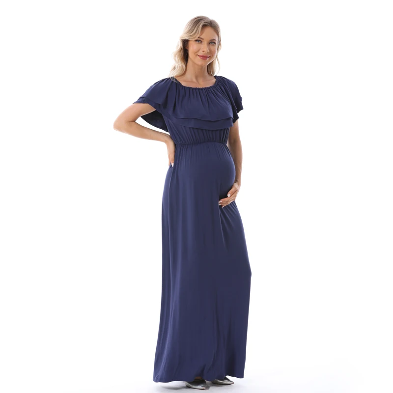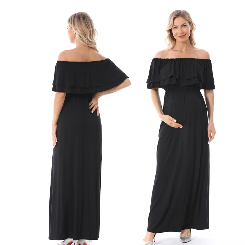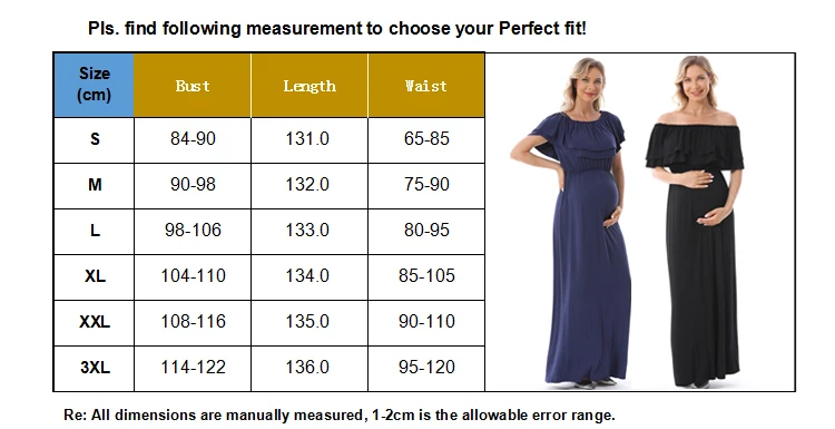 1). Descriptions: Ruffles Maternity Long Dress Off Shoulder Maternity Dress Pregnancy Breastfeeding Dress Mama Photo Shoot Pregnant Clothes2). Material: 95%Modal, 5% Spandex.3). Size available:S,M, L, XL,XXL,XXXL.4). Colors: Black,Blue.5). MOQ: 1pcs.6) Feature:Soft Modal Fabric,Easy for nursing,Fashion Style, high elasticity, softness, comfortable, breathable Sweat-absorbent, wearing Relax.Your OEM Designs are welcomed.7). Ship date: 24 hours after order is confirmed.Pls. feel free to Contact us if you want to Mix order other different items.Payment: By Paypal, OR T/T.Shipping:1).Goods will normally be despatched within 3 working days after receiving your payment.2).Normally orders will be shipped by EMS or DHL or UPS,pls. inform us in advance if you need other shipping way.3).The tracking no. will be written on the website for your tracking after despatching,pls. allow 5-7 working days for your shipping by UPS or DHL,7-10 working days for EMS shipping.4).The buyers are responsible for import duties and local taxes by their country if any.5).Please make sure the Ship-To address you writting in your order is correct.Return Policy:1).We provide 30 days warranty for this item,but we won`t accept return of any items for damages after use or damaged factitiously.2).Pls. contact us by email and describe the damages together with pictures.Pls. respond within 2 days after yours receipt if any damage.3).Pls. allow little color difference due to different camera or light environment.4).We'll proceed you