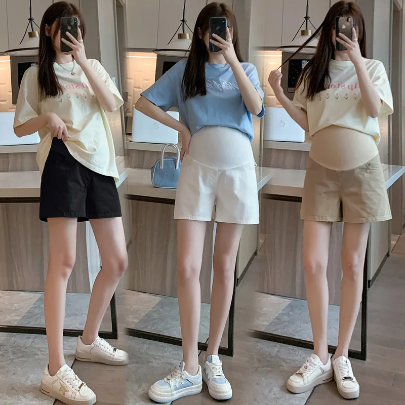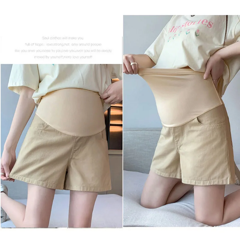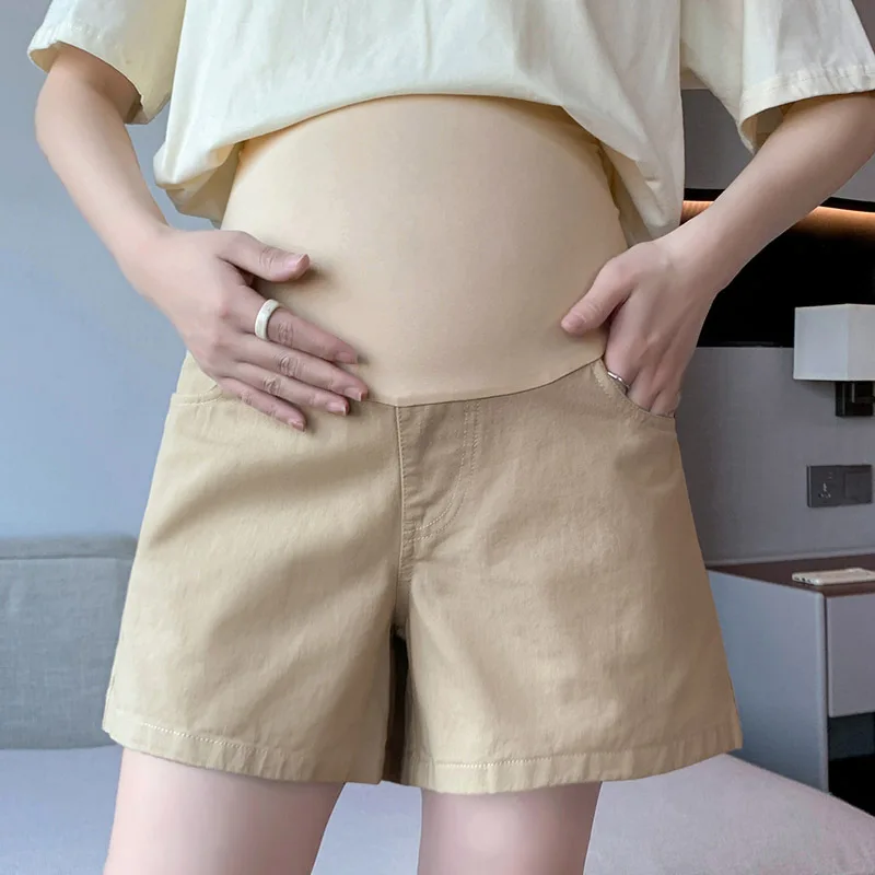 Spring And Summer Fashion Pregnant Women Shorts Solid Color Casual Abdominal Trousers High Waist Maternity Shorts New