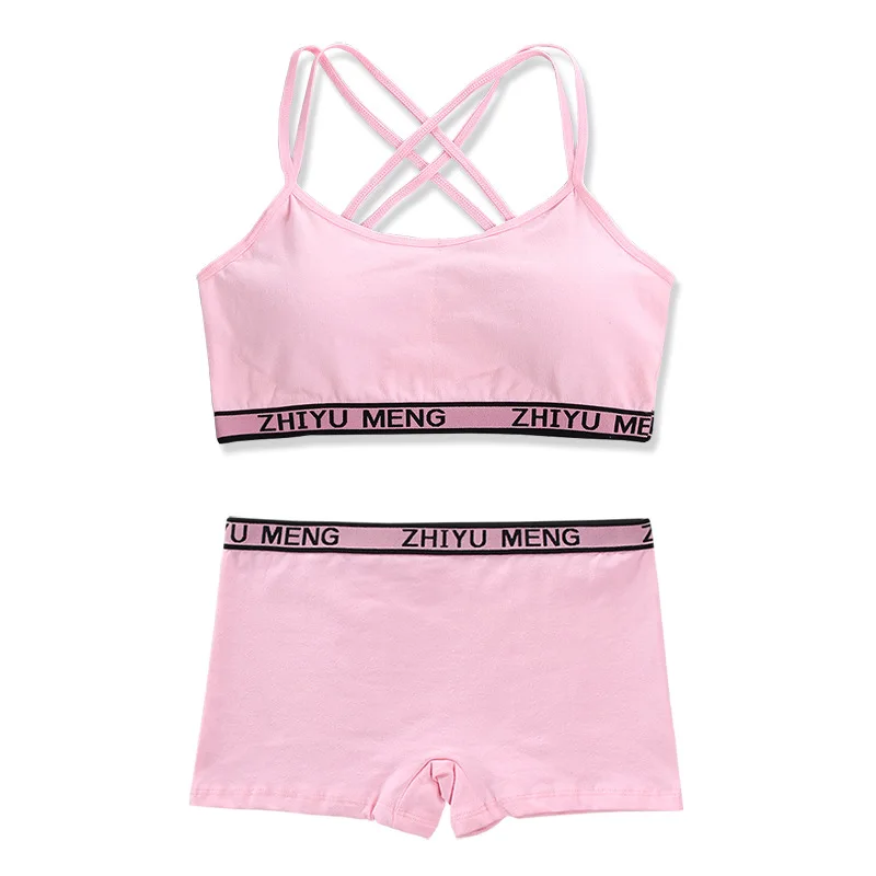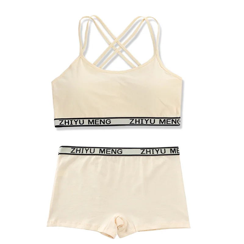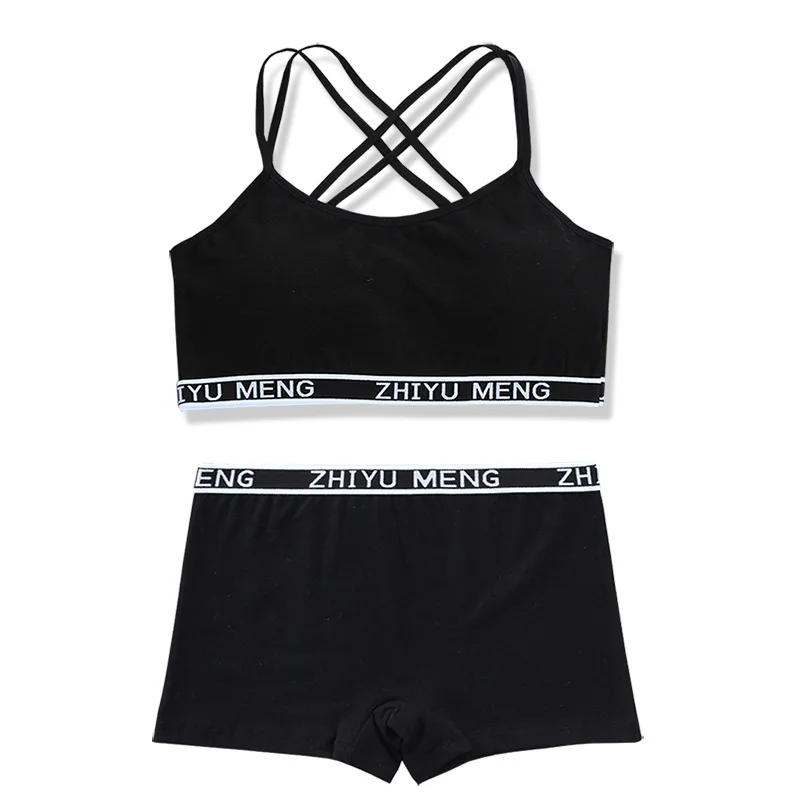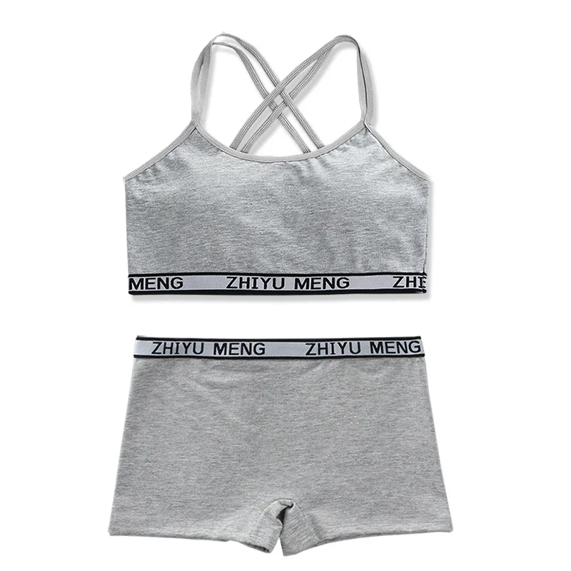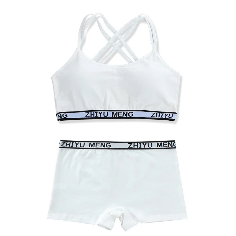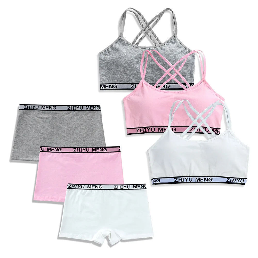 Teenager Girls Bra And Panties Set Casual Young Children Solid Cotton Padded Training Bra+Elastic Waist Brief Kids Underwear Set