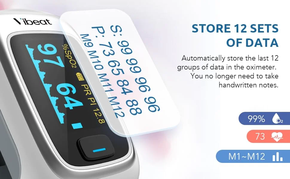 Memory: 12 Groups SpO2 Data Storage