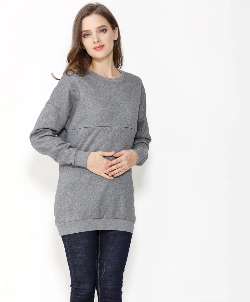 1). Descriptions: Winter Maternity Sweater Nursing Tops Long Sleeve Hoodies Breastfeeding Clothes Pregnant Jumpersuit T-Shirt2). Material: 95% Cotton, 5% spandex.3). Size available: S&M&L&XL&XXL&XXXL&XXXXL.4). MOQ: 1pc.5) Feature: Fashion design, Chiffon fabric for front, Knitted fabric for back. Easy for nursing, high elasticity, softness, comfortable, breathable Sweat-absorbent, wearing Relax.Your OEM Designs are welcomed.6). Ship date: 24 hours after order is confirmed.Pls. feel free to Contact us if you want to Mix order other different items.