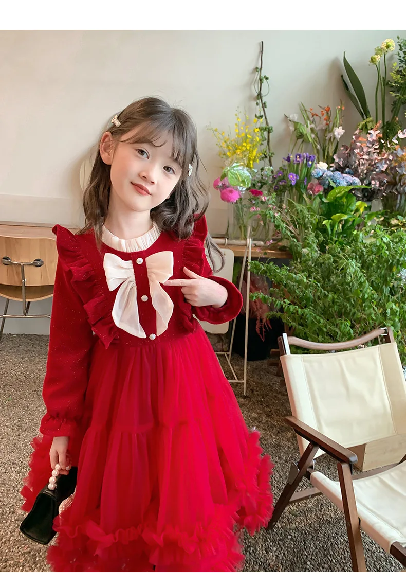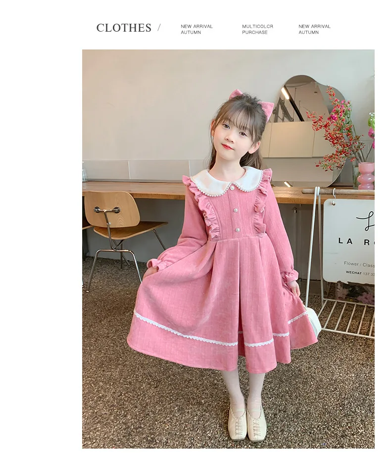 A sweet style dress in two colors, suitable for girls aged 2-12. Each color of skirt has a style suitable for spring and autumn wear and a lining with plush for winter wear