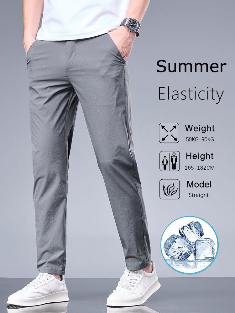 Summer New Business Ice Silk Pants Straight Elastic Waist Black Gray Trousers Br