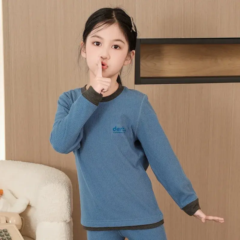 Autumn Winter Kids' Jacquard Reversible Warm Sleepwear Base Layer Top For Boys A