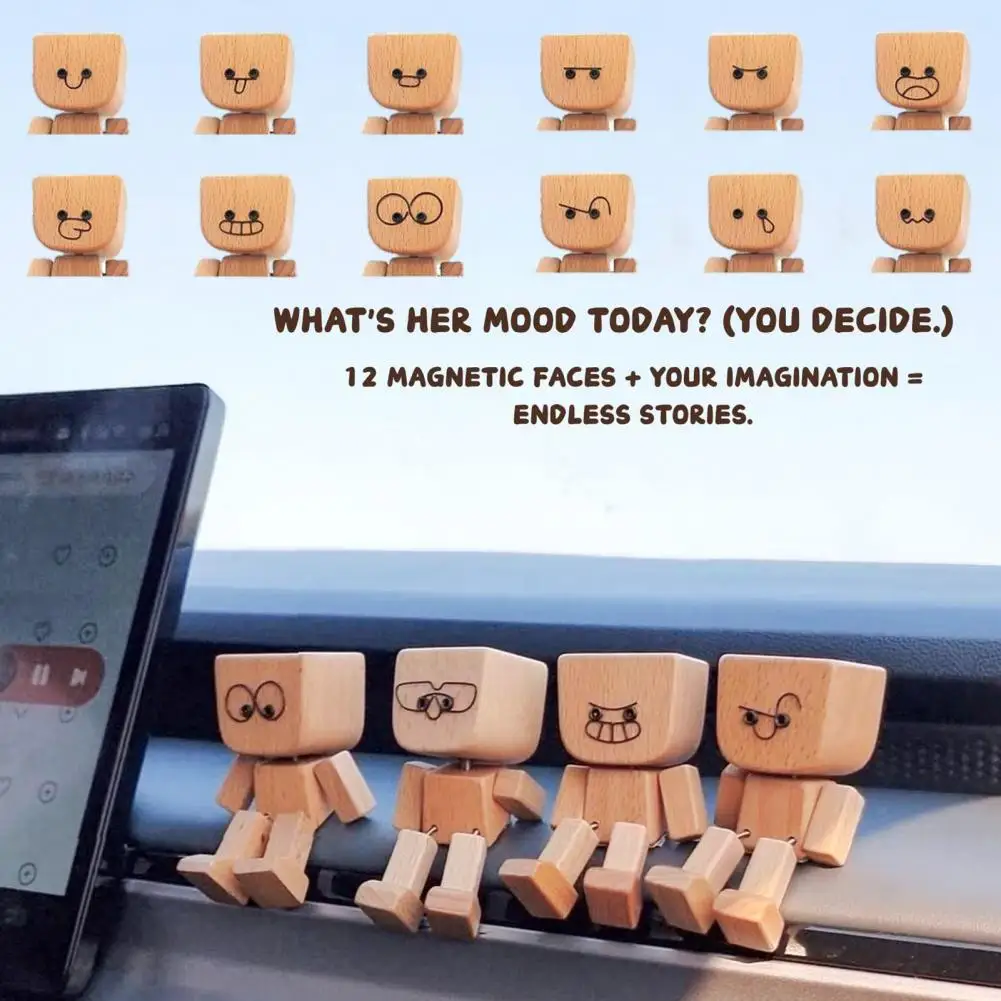 Multifunctional Decorative Accent: Versatile in design, this wooden doll serves as an exquisite dashboard ornament for cars or a delightful desk accessory, blending seamlessly into diverse environments with its compact size and intricate craftsmanship.