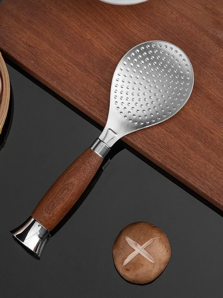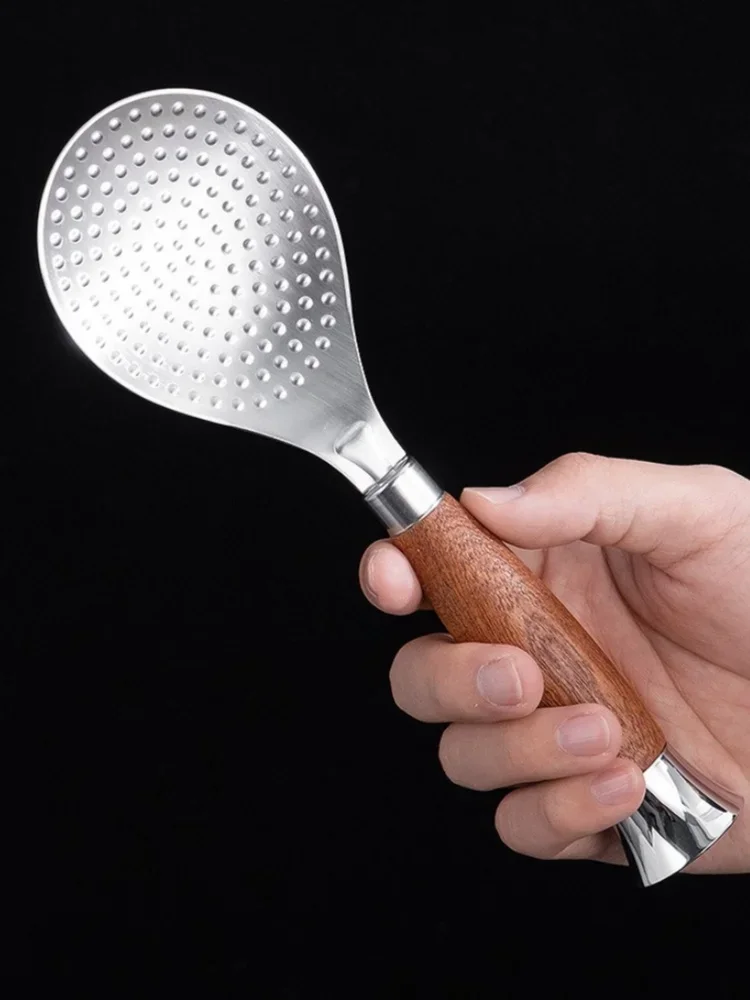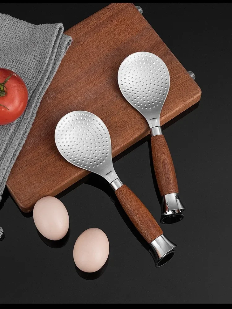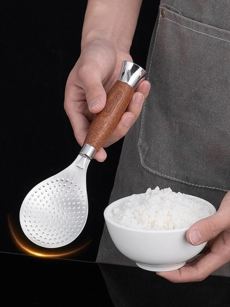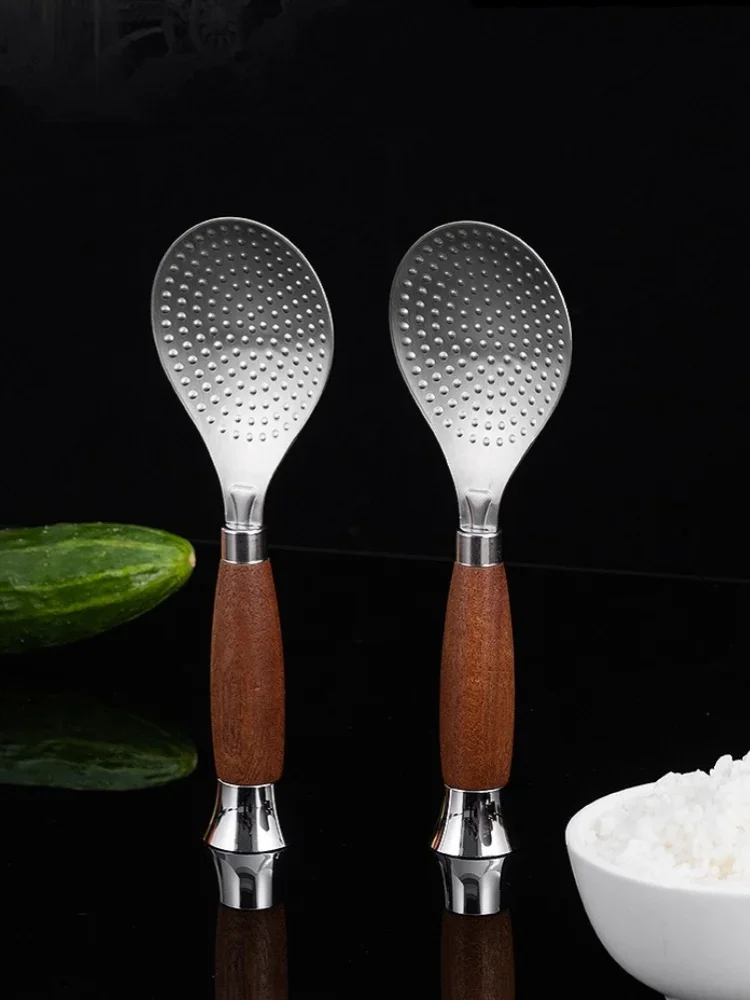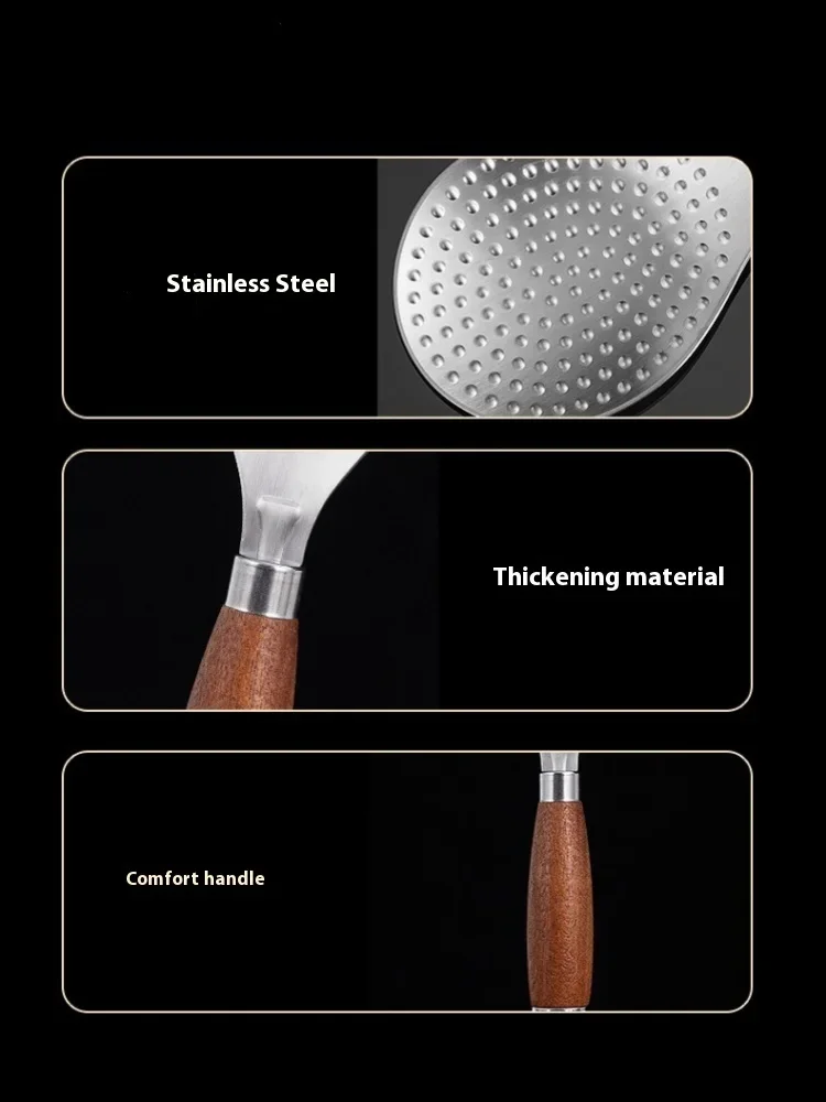 1/2Pcs Rice Scoop Thickened Stainless Steel and Wooden Handle Spoon Non-stick Rice Spatula Household Restaurant Kitchen Tools