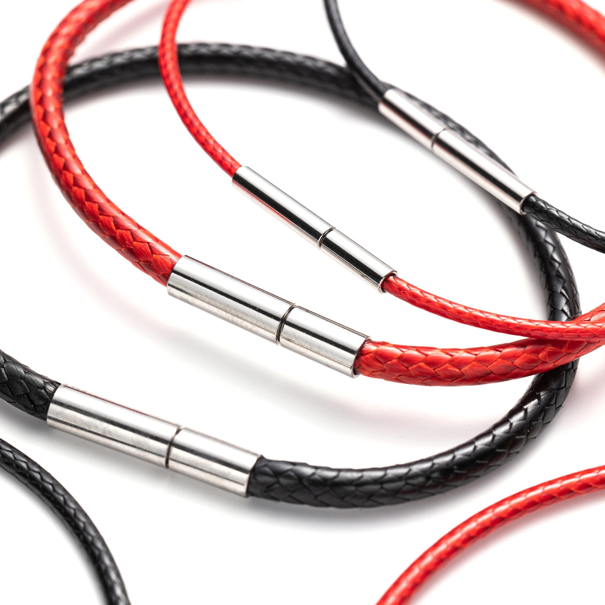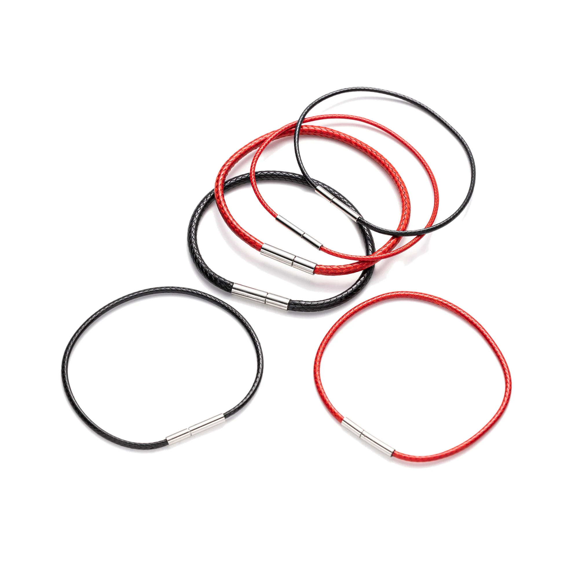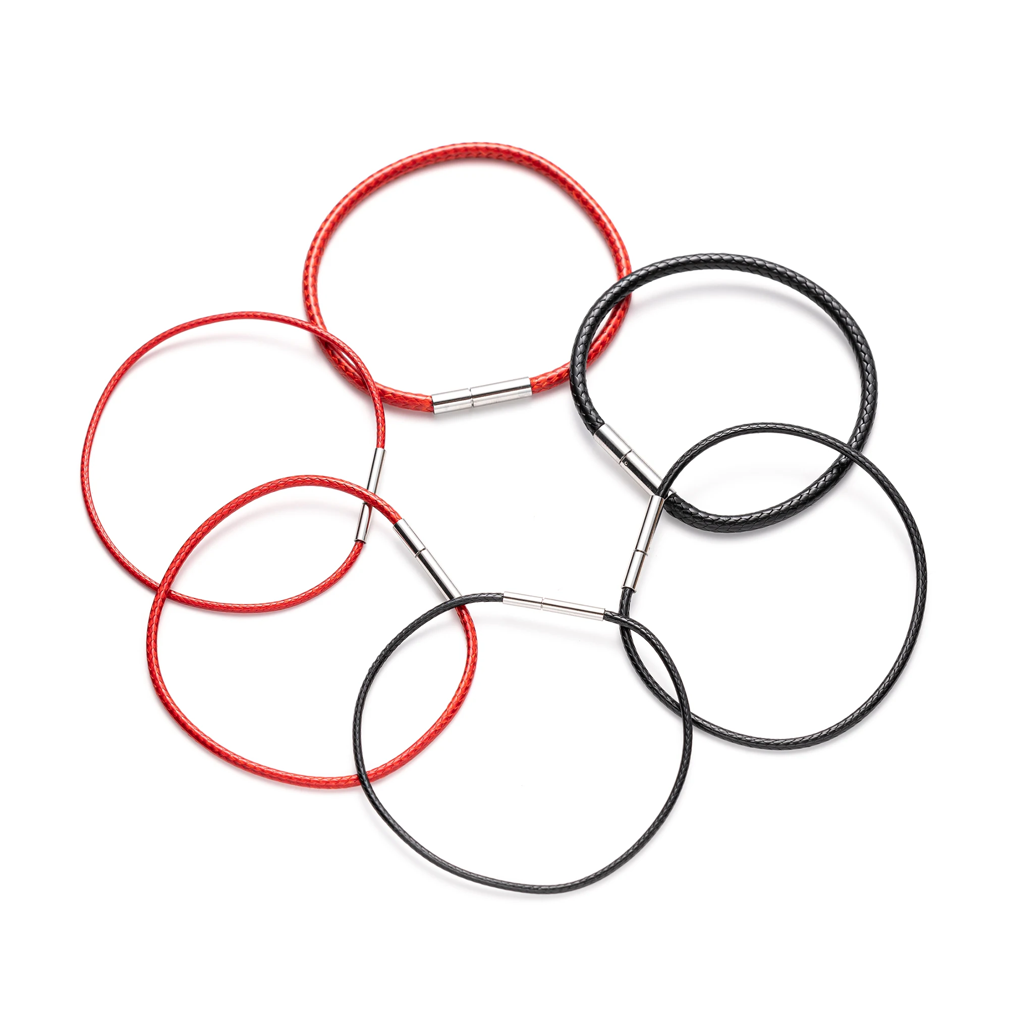 BASEHOME 1.5/2/3mm Black Red Wax Rope Bracelets Bangle Stainless Steel Clasp Leather Cord Bracelet for Gift LoverMaterial:Wax RopeSize:1.5mm/2.0mm/3.0mm(line diameter) 17mm/18mm (chain length)Quantity:1PC