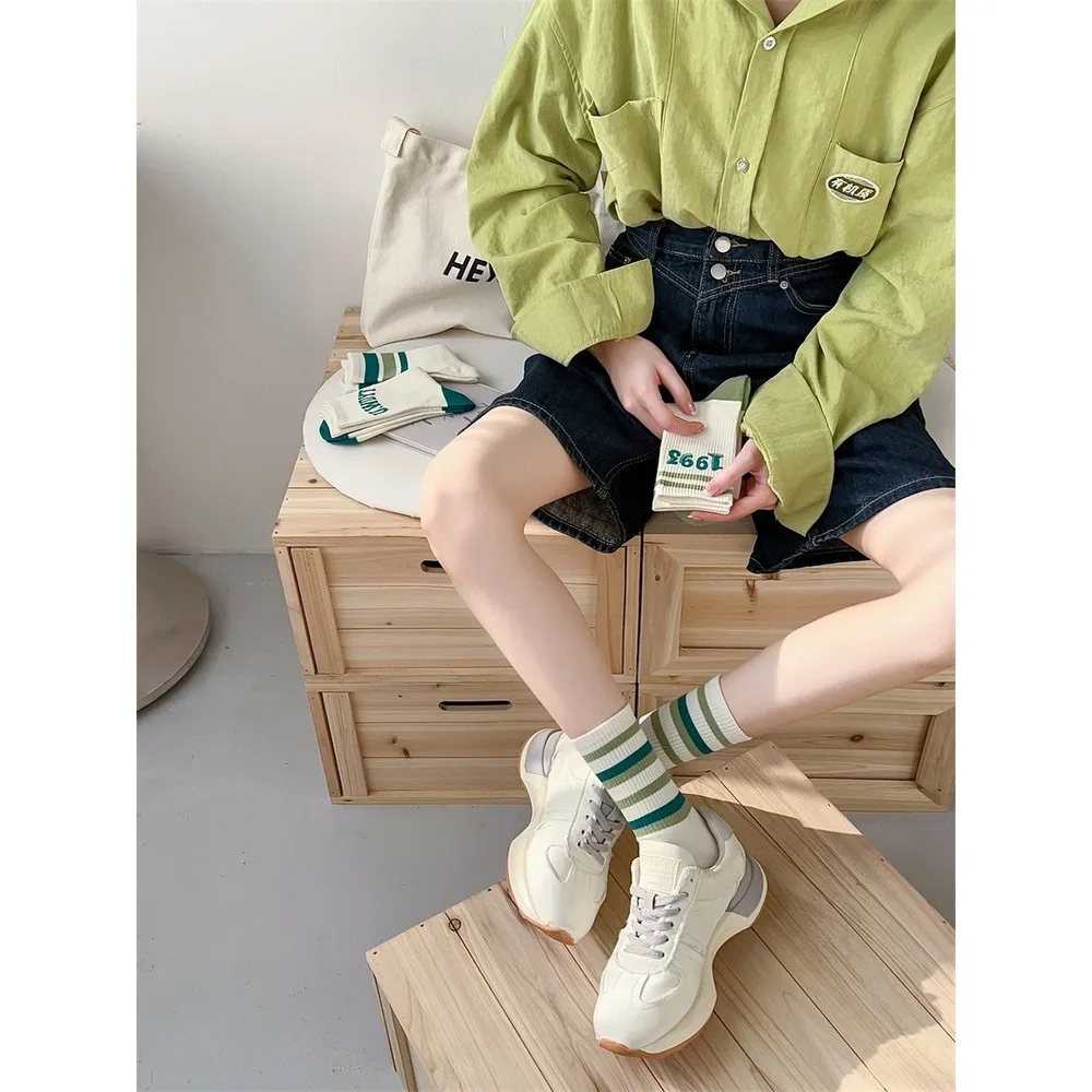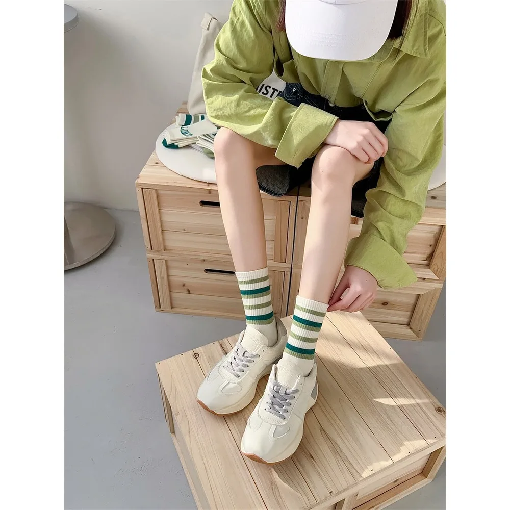3.Features:Men's and women's white socks with colorful striped cuffs, fashionable and trendy, Korean style, sweat absorbing and comfortable, suitable for all seasons