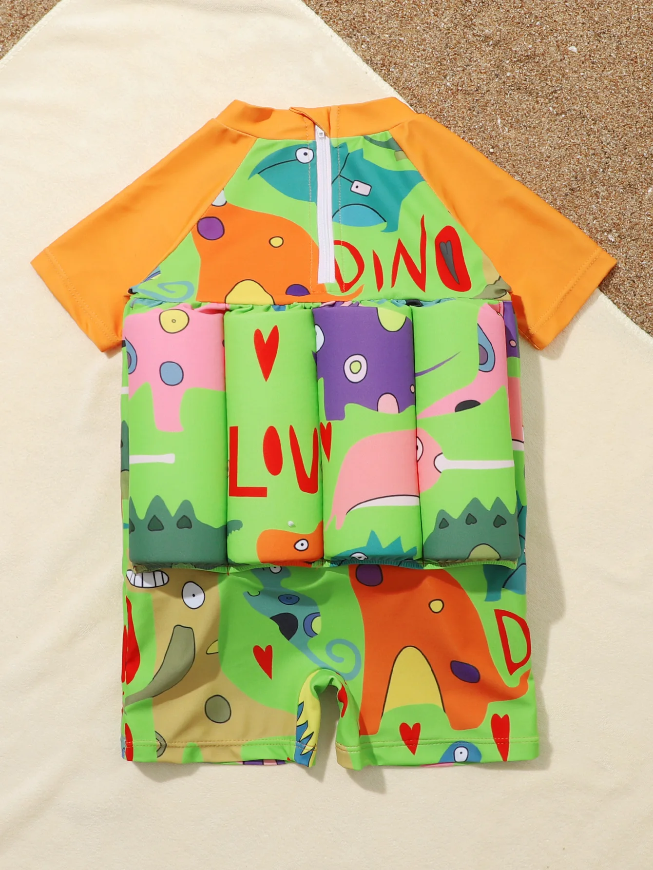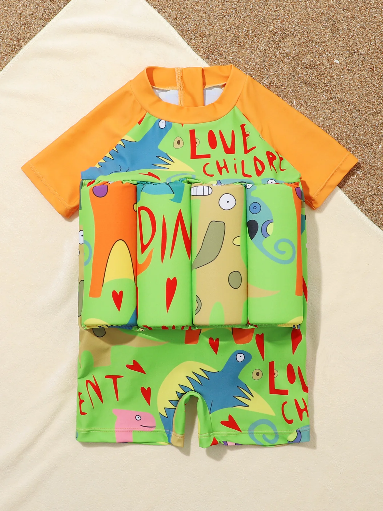 1-5Y Children's Buoyancy Swimsuit Cartoon Swimwear Kids One-Piece Floating Rash Guards Bathing Clothes Boys Girls Swimming Suits