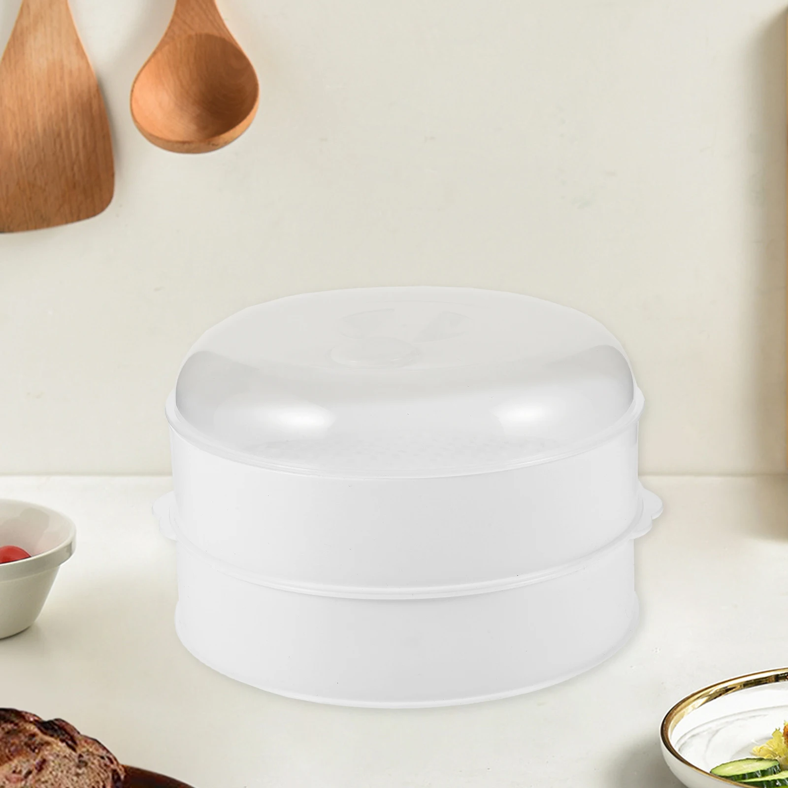 Microwave Steamer Box Double Layered Food Container Lid Heat Resistant Pp Material Easy Clean Kitchen Cookware Household