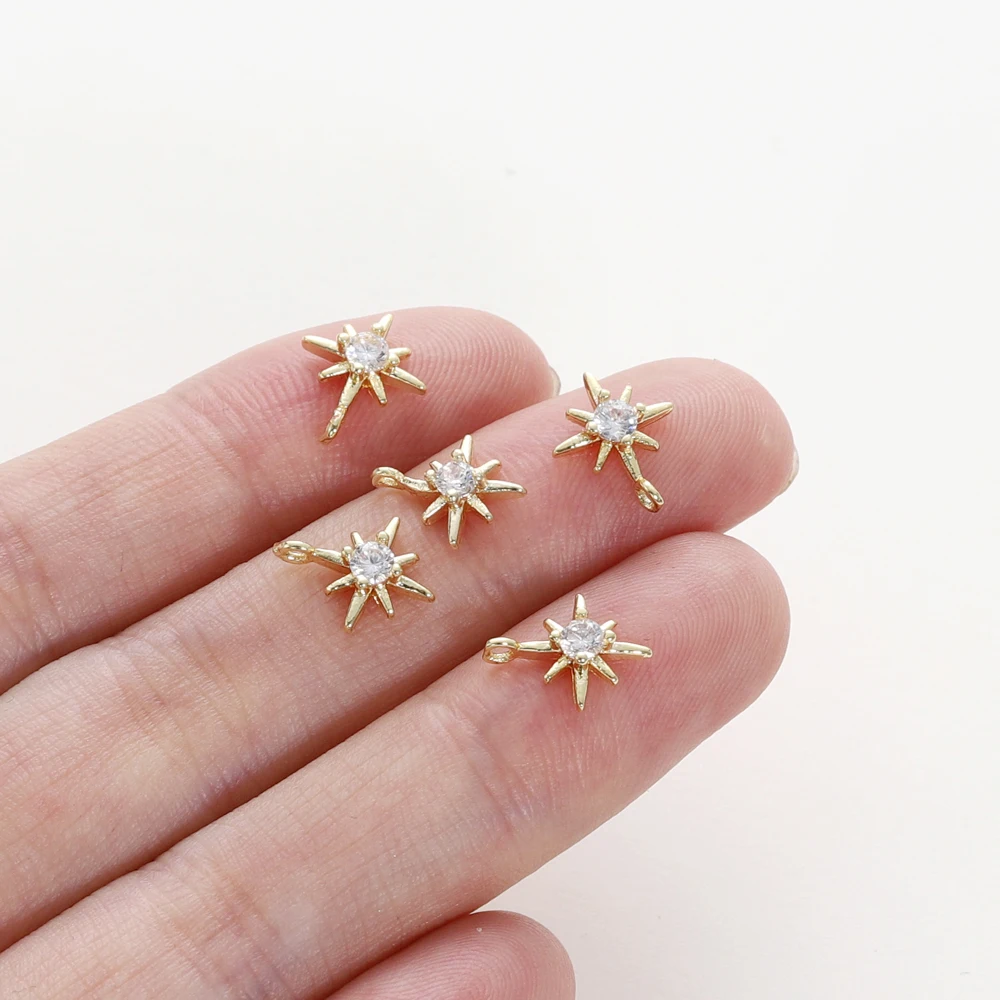 10pcs/lot 18K Gold Colors Rhinestone Hexagram Stars Brass Pendants Bracelet Charm Decoration For Necklace Jewelry Making Finding