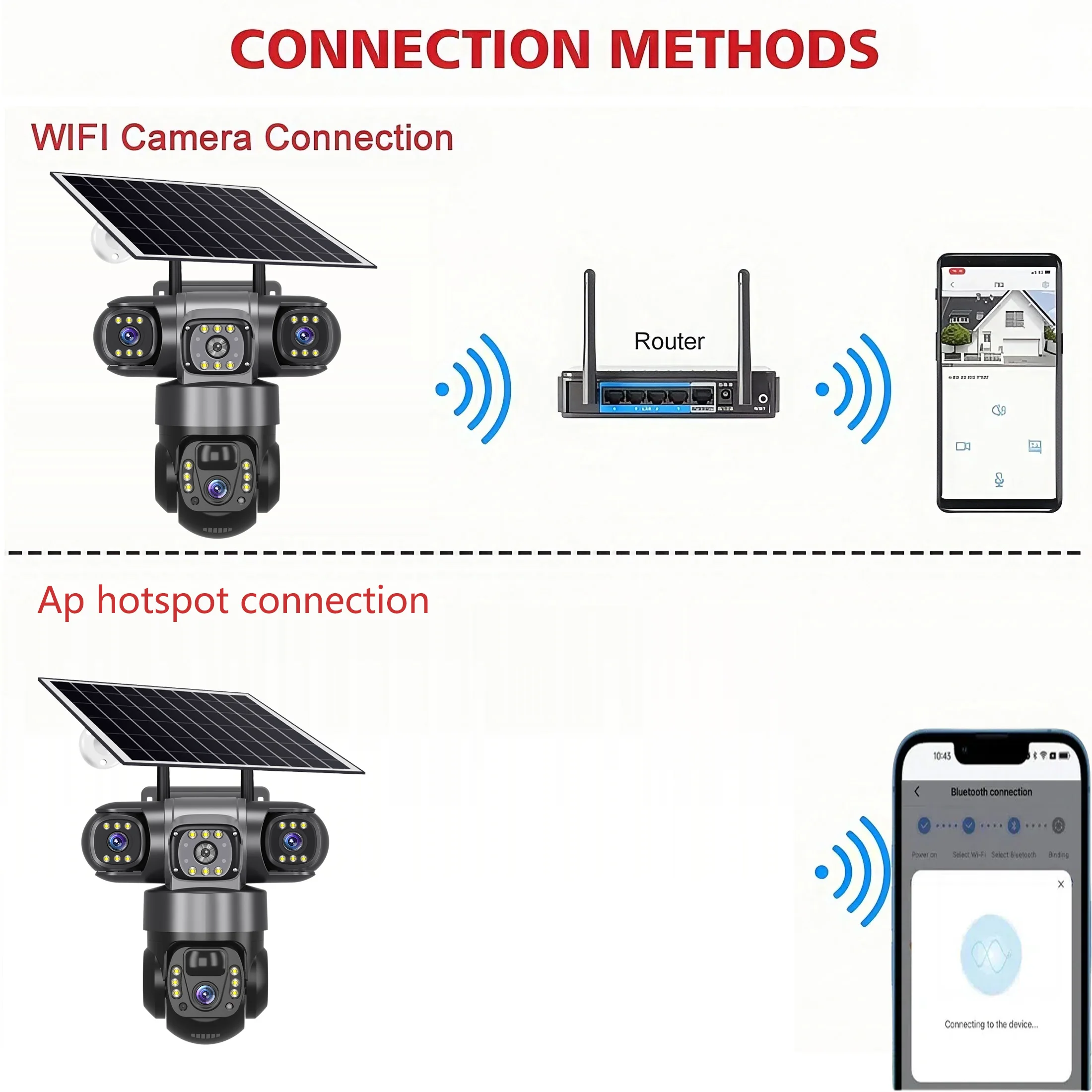 *The camera can be detached with a large capacity battery(8000mah), And the top 10W solar panel is converted into energy by absorption and heat absorption to power the battery without connecting, the power supply easy to navigate.