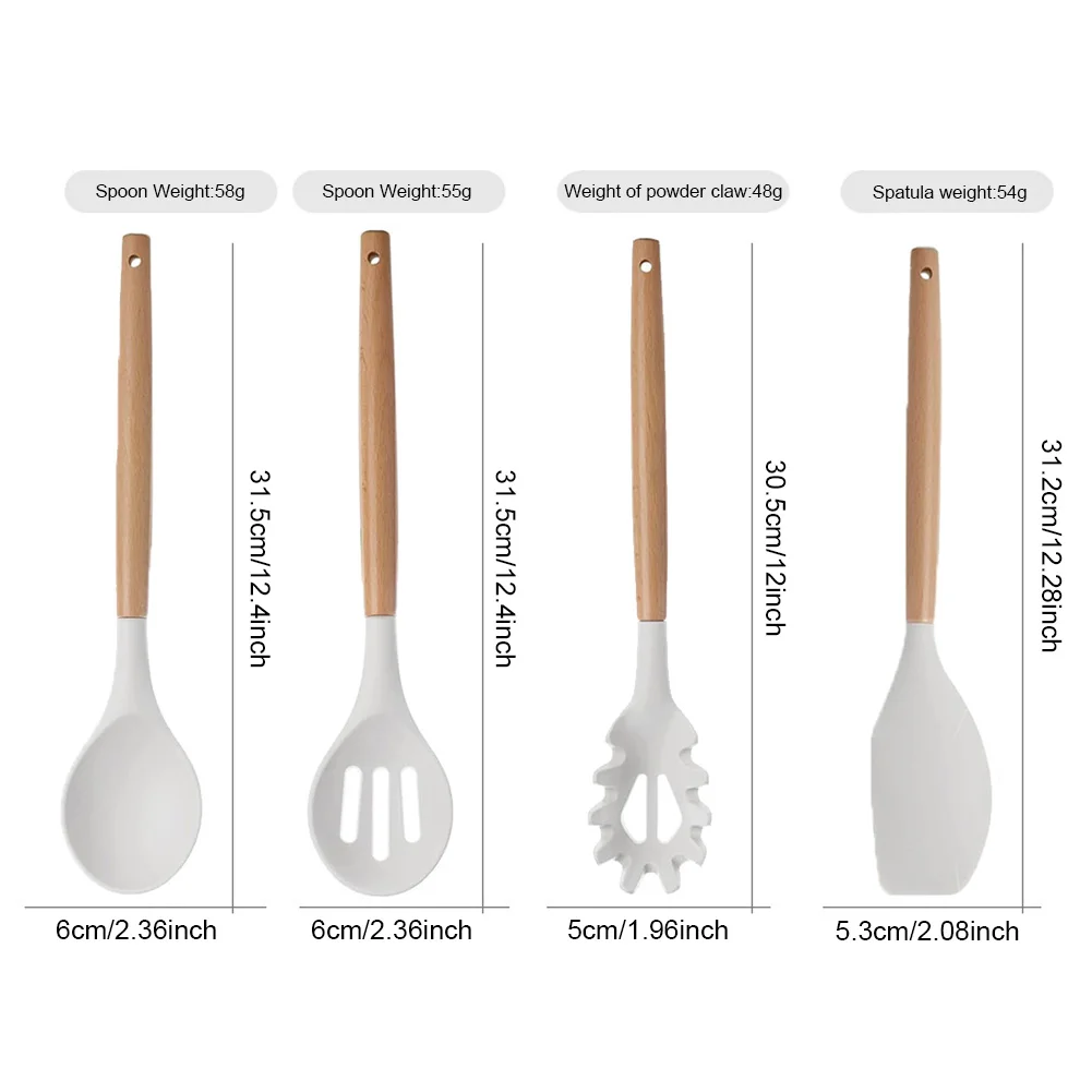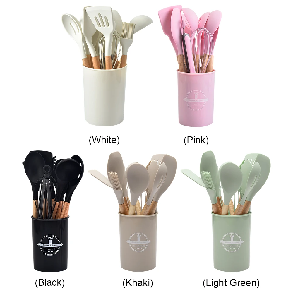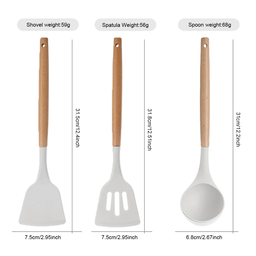 12Pcs Kitchen Utensil Set Heat-Resistant Cookware Wooden Handle Non-Stick Spatula Set Spatula Spoon Brush Whisk Kitchen Supplies
