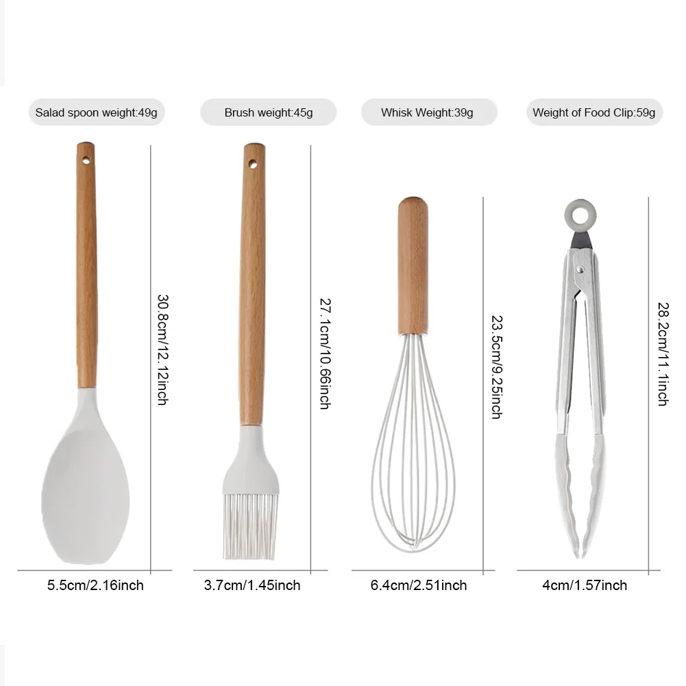 12Pcs Kitchen Utensil Set Heat-Resistant Cookware Wooden Handle Non-Stick Spatula Set Spatula Spoon Brush Whisk Kitchen Supplies