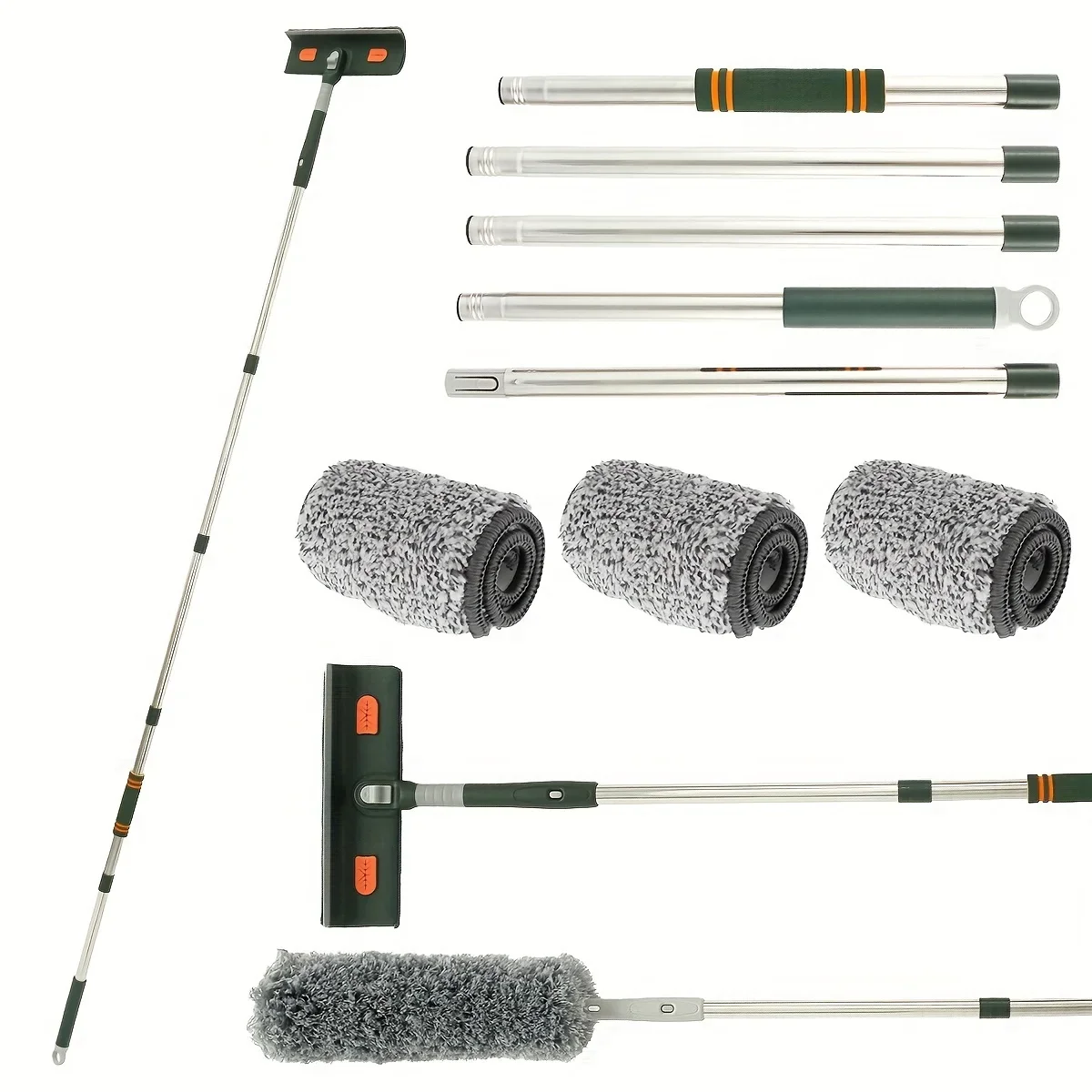 Package contents:A. 3-section green glass cleaning scraper + short handle + microfiber + 2 replacement clothsB: 5-section green glass cleaning scraper + 2 replacement cloths + 1 scraper