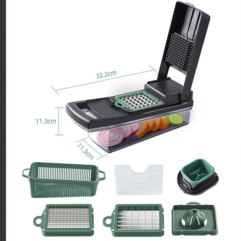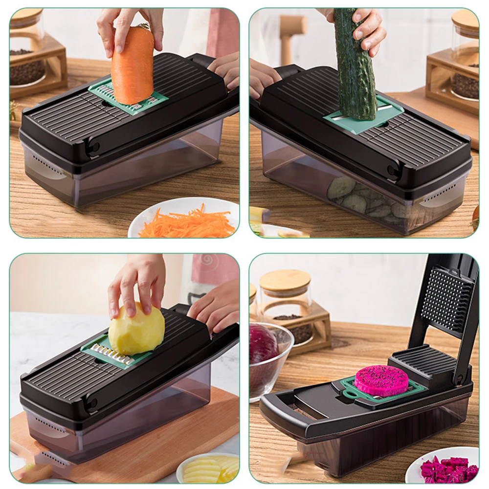 15-In-1 Vegetable Chopper Manual Food Processor Onion Garlic Pepper Potatoes Multifunction Kitchen Vegetable Slicer Dicer Cutter