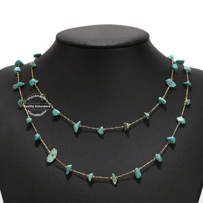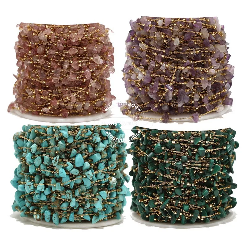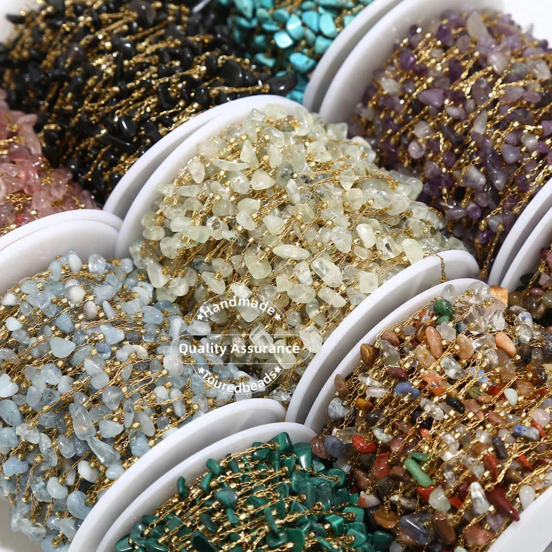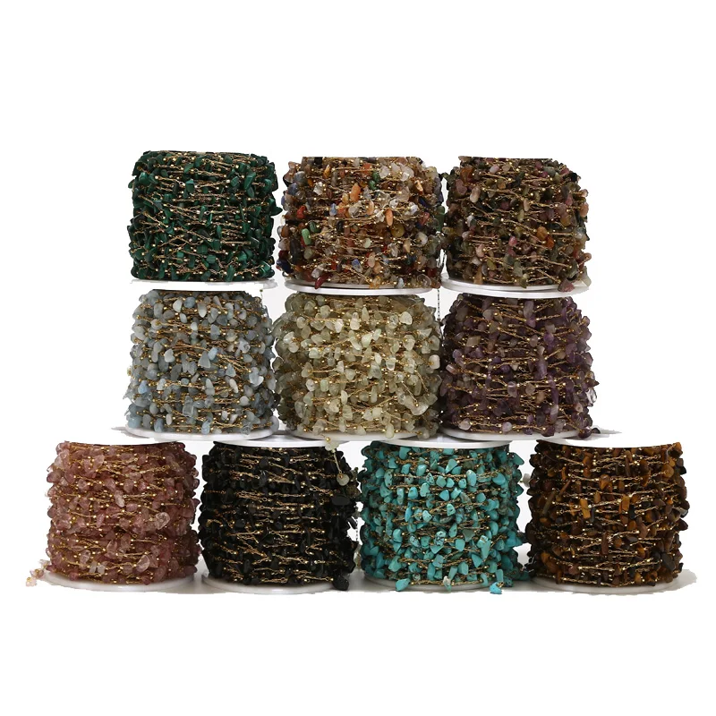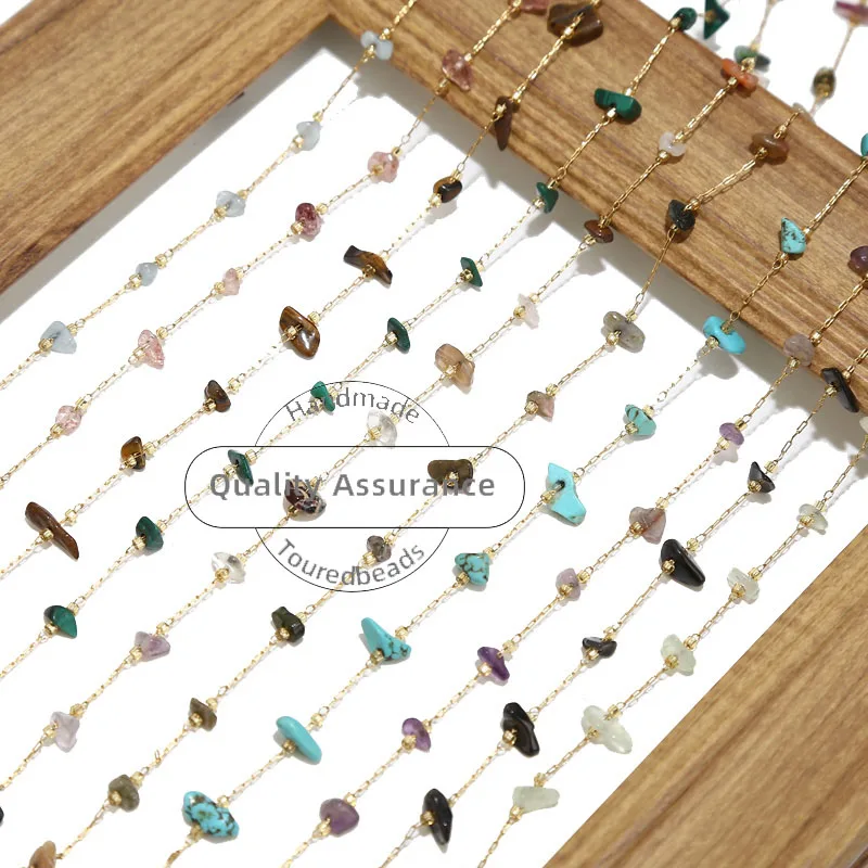 Color: Gold chain with small Irregular gemstones, 10 COLORS