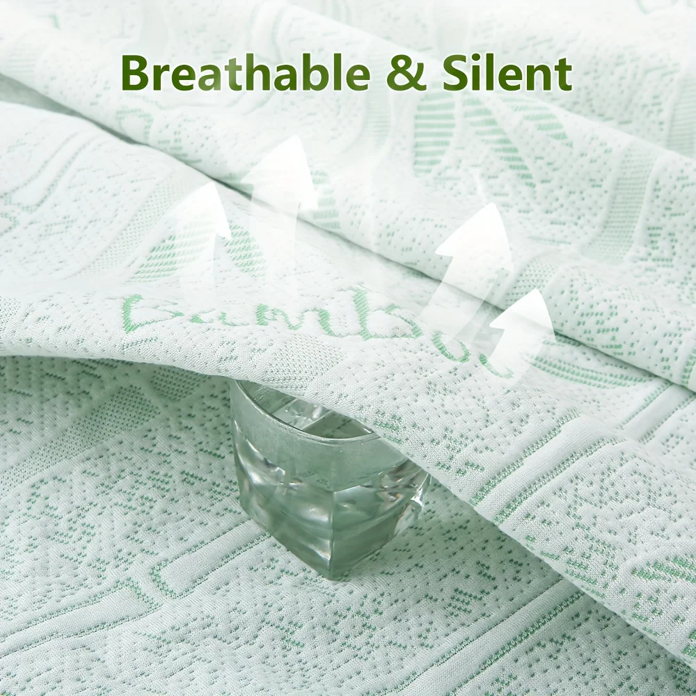 Experience the natural coolness of bamboo with our ultra-soft, breathable mattress protector. Designed for hot sleepers, its smooth, lightweight fabric gently regulates temperature for a soothing night’s sleep.