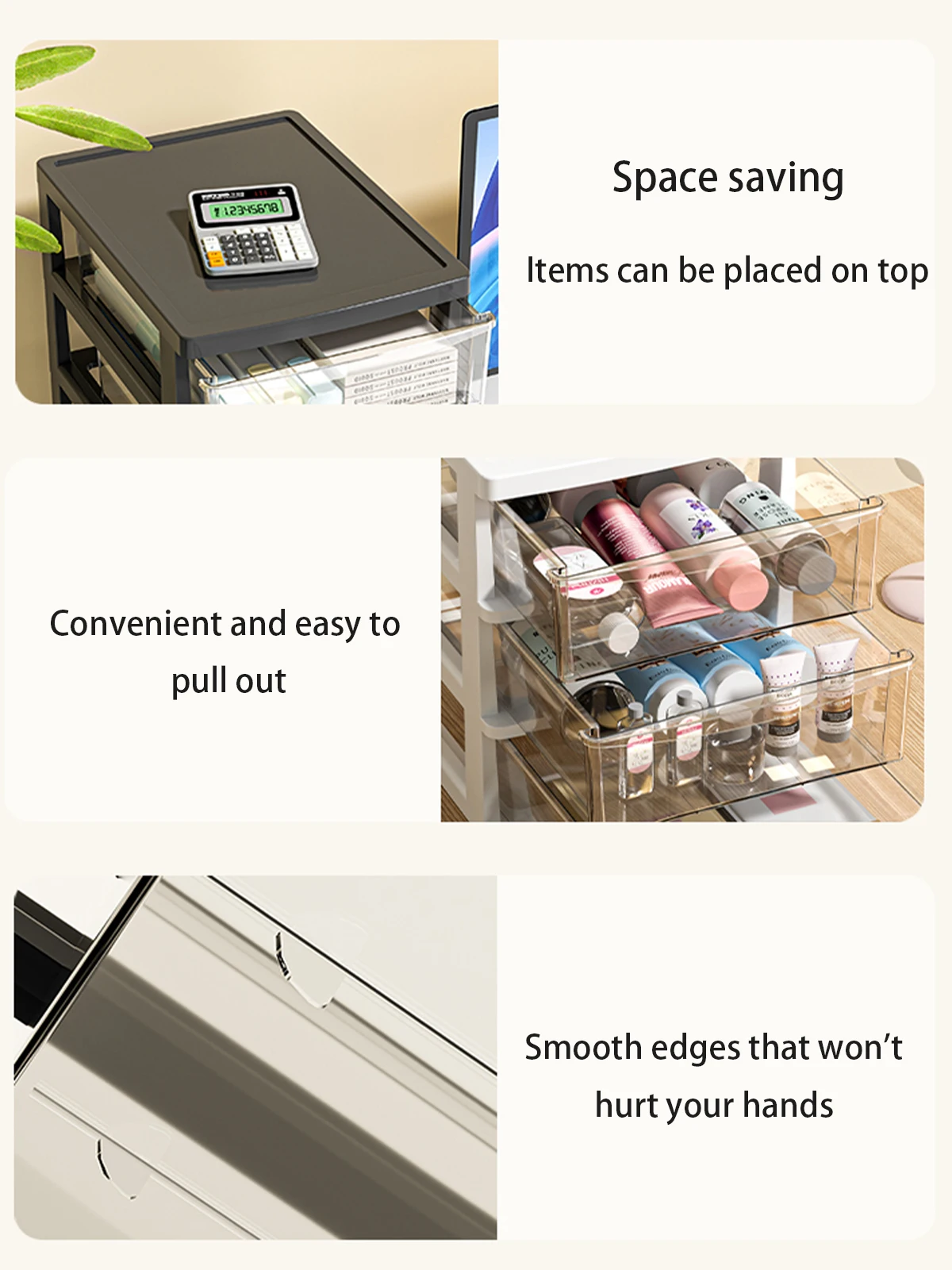 Ample storage space: With multiple drawers, this storage box provides ample storage space to organize your desk and keep it tidy.