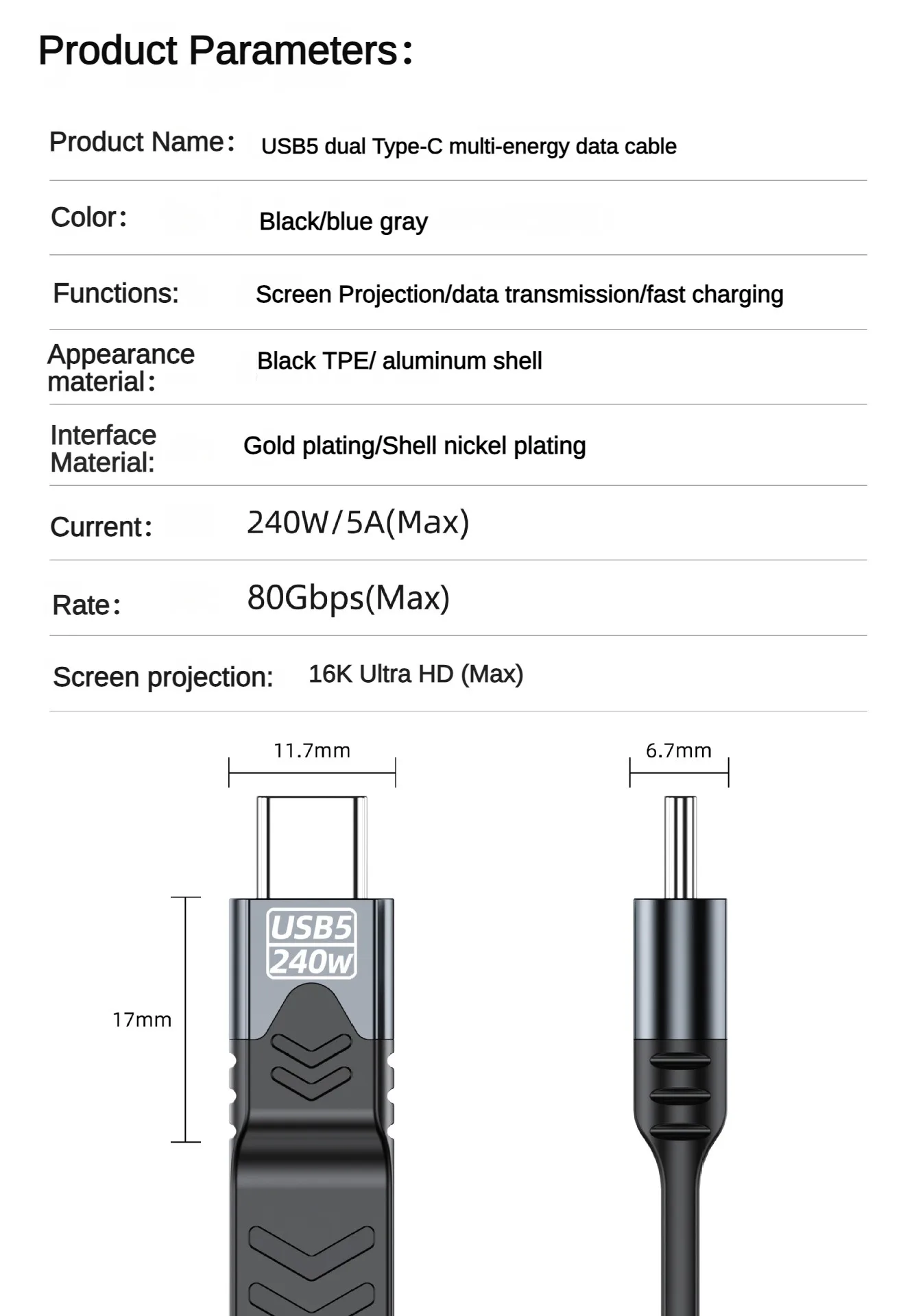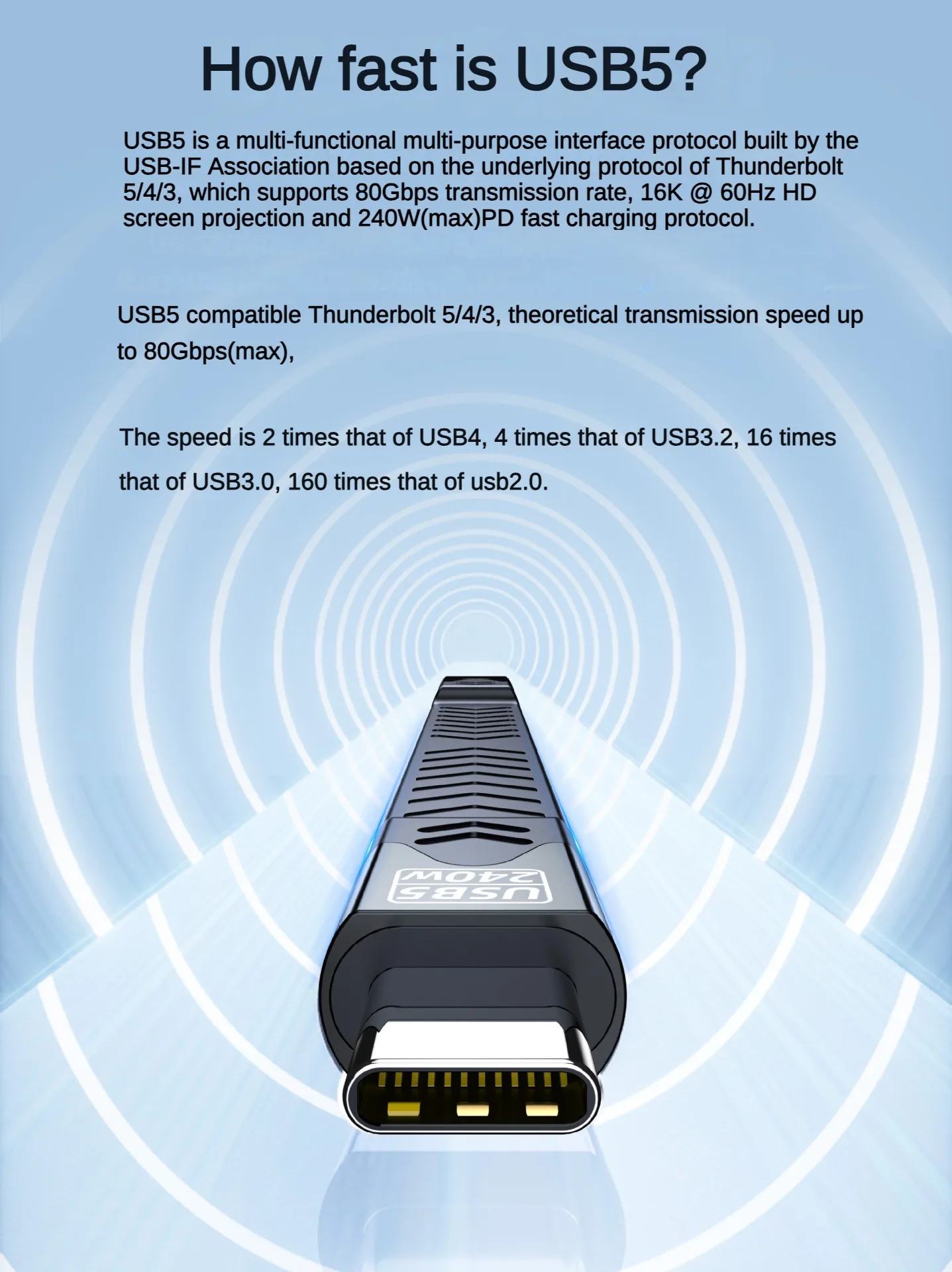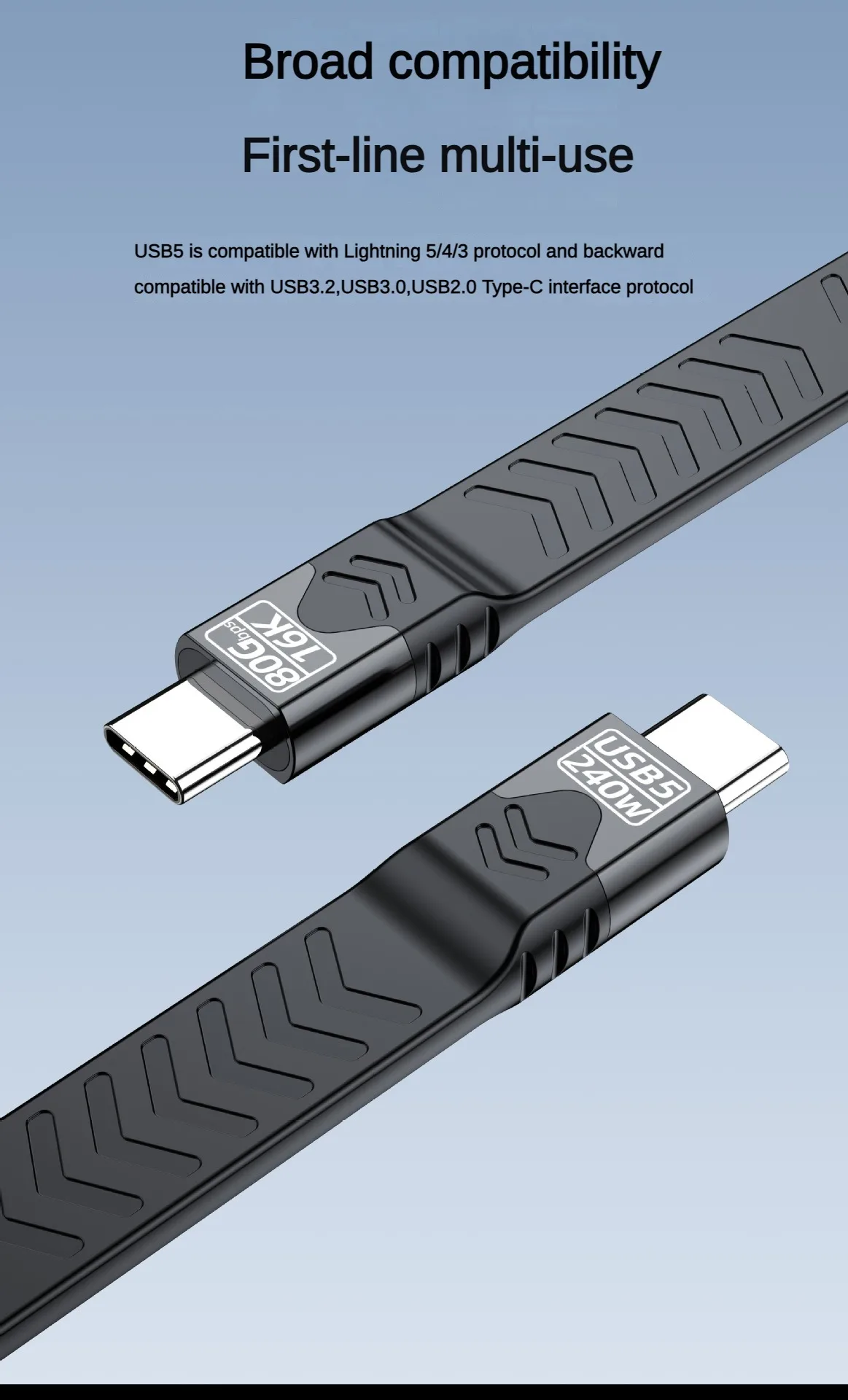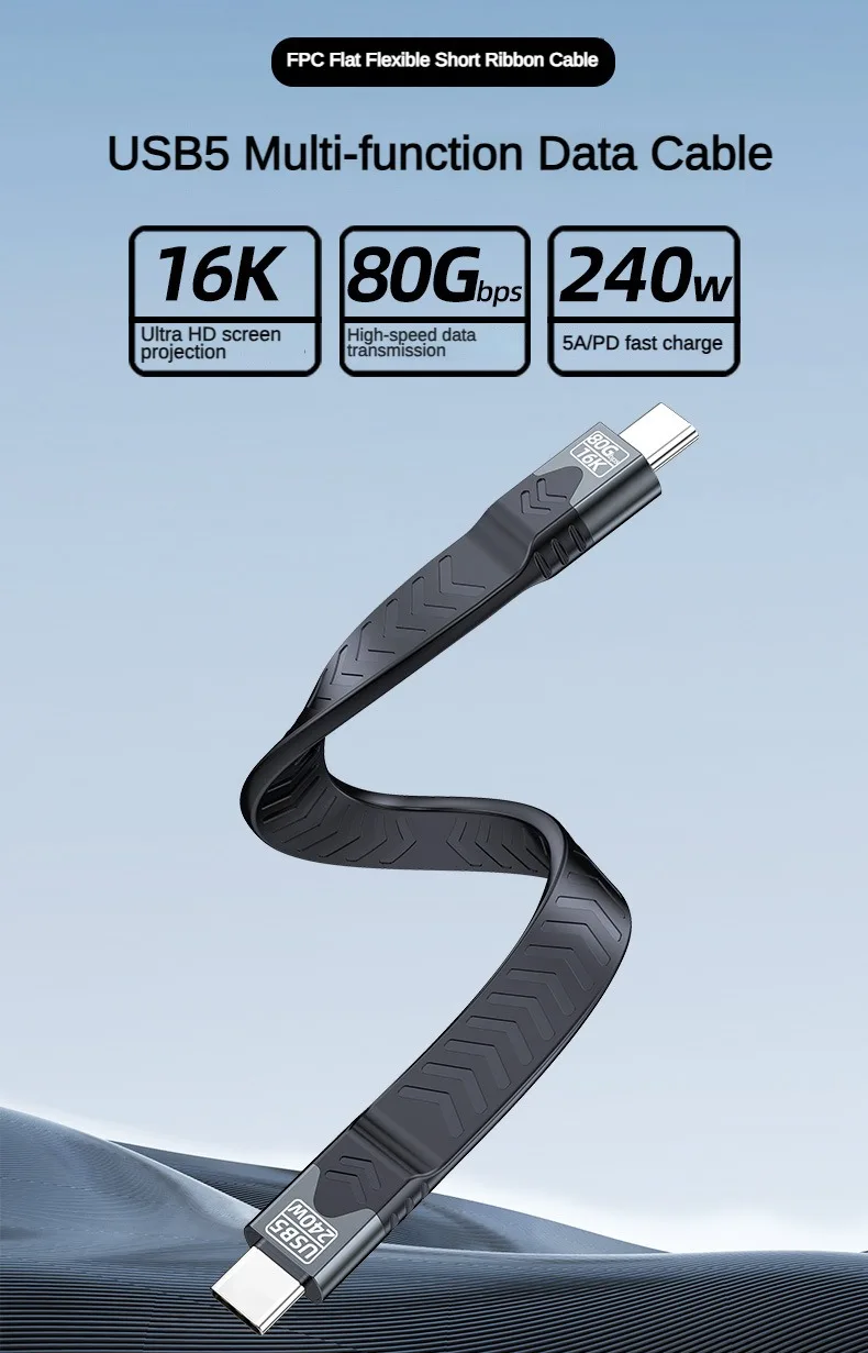 Experience fast PD240W charging and 80Gbps fast data transfer with this USB5.0 cable compatible for Thunderbolt5/4/3, engineered for seamlessly 16K video mirroring and power delivery to highly demand devices.
