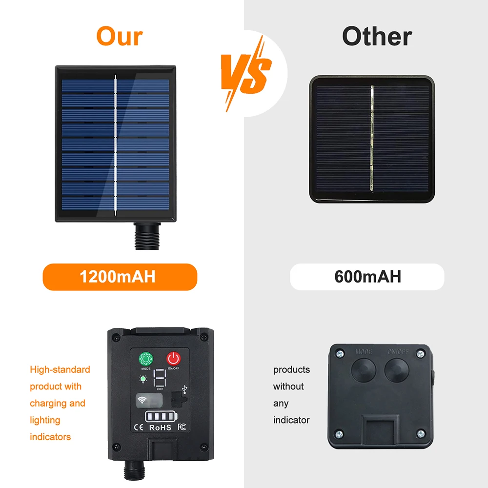 1.Silicon Solar Panel, 4-5 hours charging, 20-30 hours working time. Then, there are 8 modes, including Combination, ON/OFF, In Waves, Sequential, Chasing/Flash, Slowfade, Twinkle/Flash, and Steady On. There's also a Type-C charging option, which is interesting because it adds another charging method besides solar. Mode Indication and Indicator Light suggest that the product has some visual cues to show which mode it's in or the battery status.