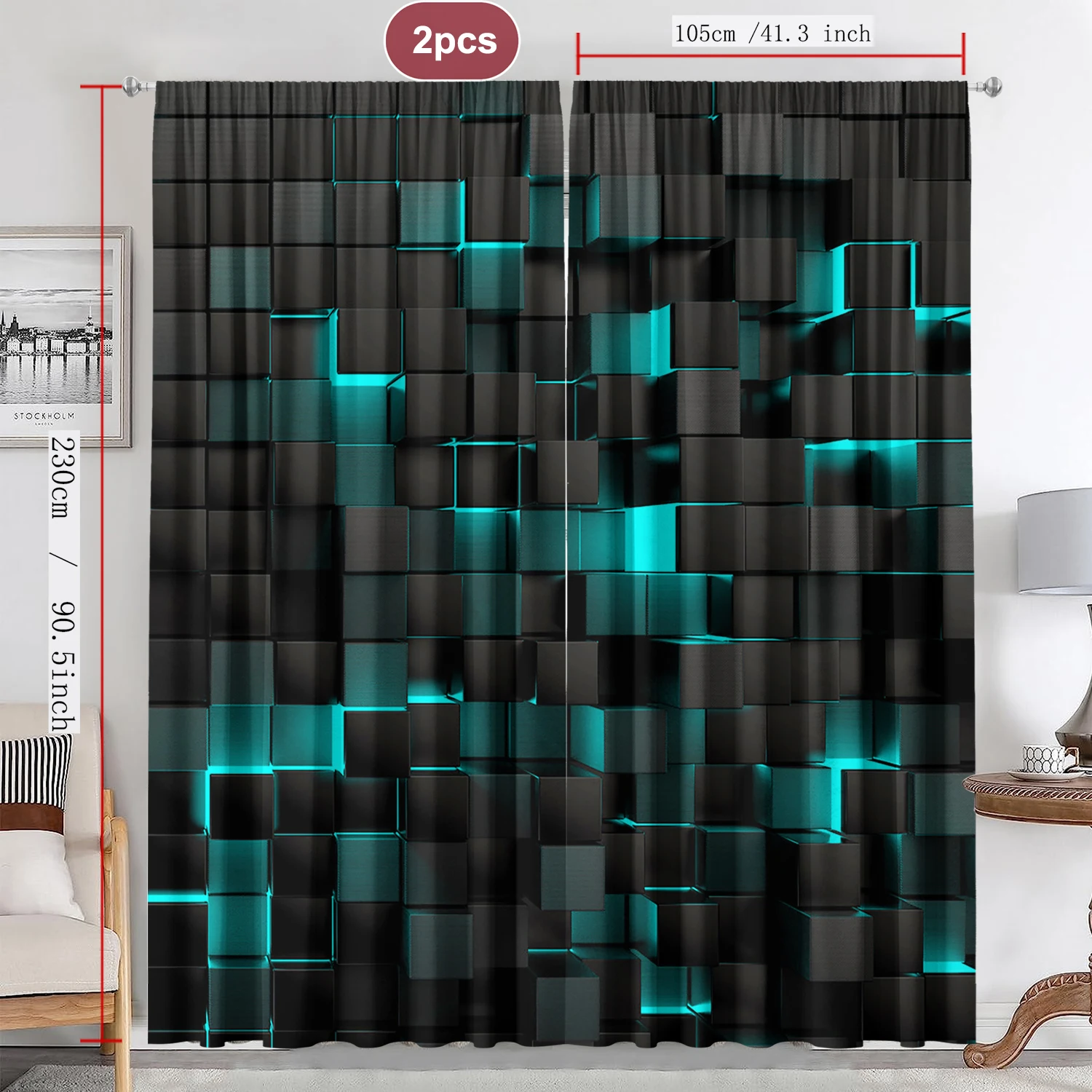 Large SIZE - 2 panels per package. Each curtain measures 41.3W x 90.5L inch(Total width is 82.6").