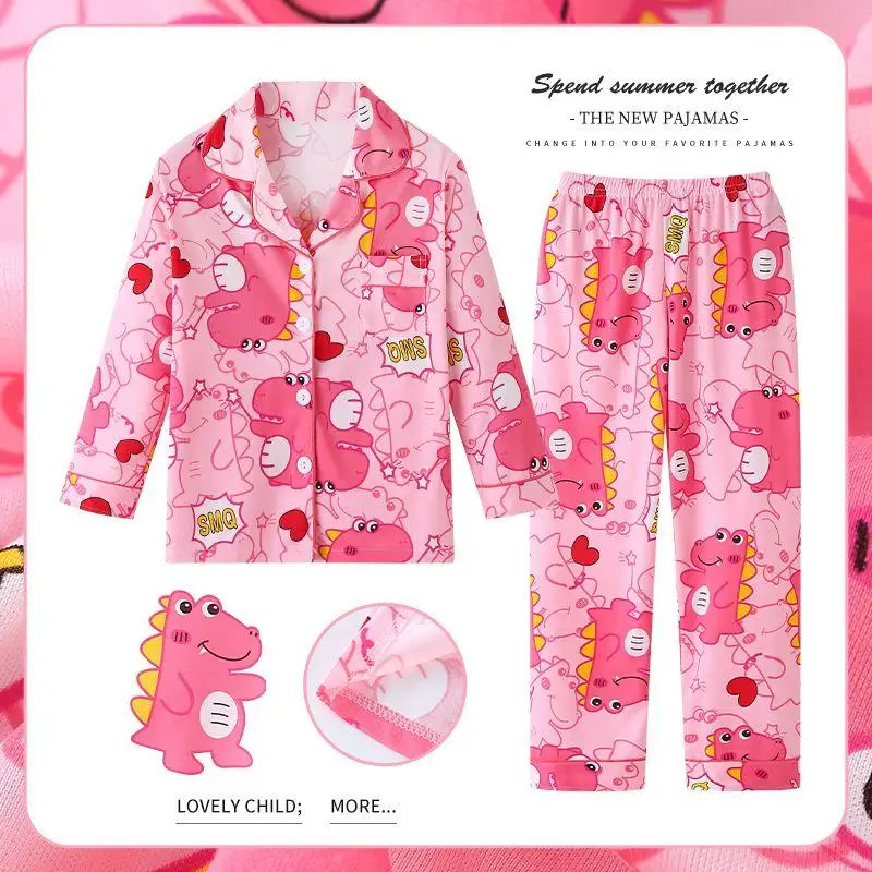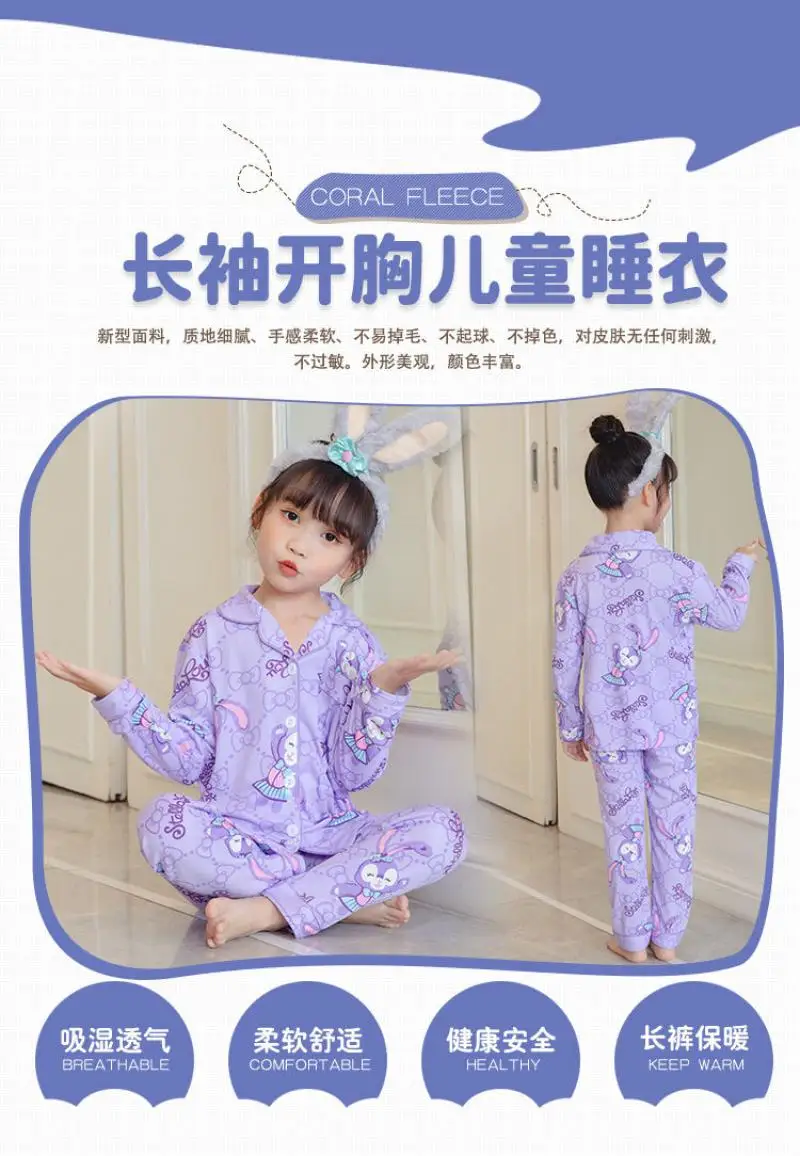 2Pcs Kid's Pajamas Long Sleeve Pants Set Sanrioed Cartoon Kuromi Cinnamoroll Loungewear Girls Sleepwear Printing Homewear Suit