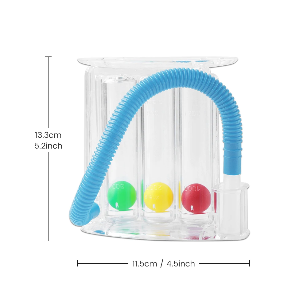 3 color coded balls for differing inhalation rates - from 600cc/sec, 900cc/sec, 1200 cc/ sec. Adjust the intensity of breathing exercise according to your own situation.