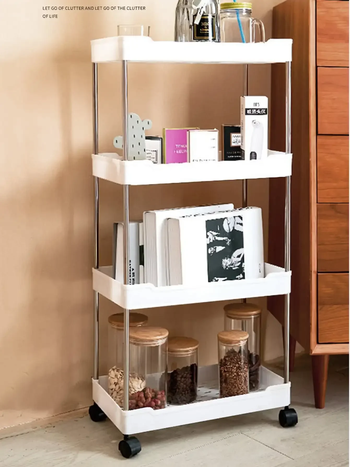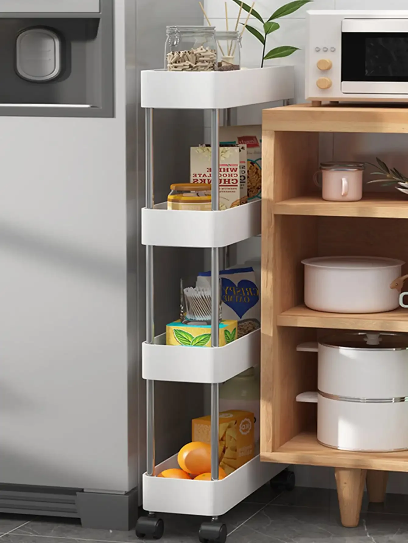 1pcs 3/4 Tier Rolling Utility Cart Storage Shelf Movable Gap Storage Rack Kitchen Bathroom Slim Slide Organizer Shelf Livingroom