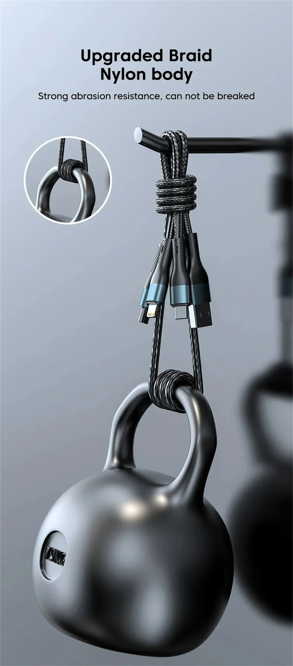 • 3 in 1 Cable :Charge multiple devices with one cable. This 3 in 1 cable supports USB C, Micro USB and Lightning connectors.