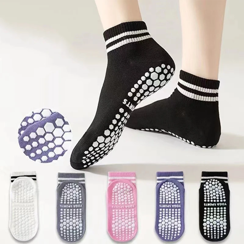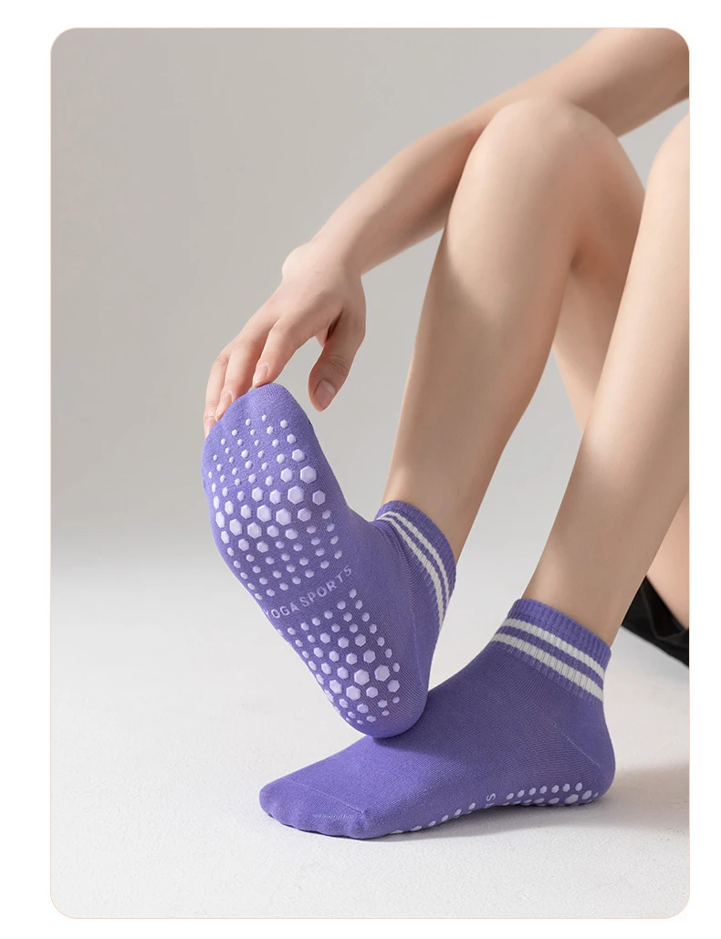 3 Pairs Double Stripes Yoga Socks for Women Non Slip Pilates Grip Socks Anti Slip Sport Socks for Workout Ballet Athletic Socks