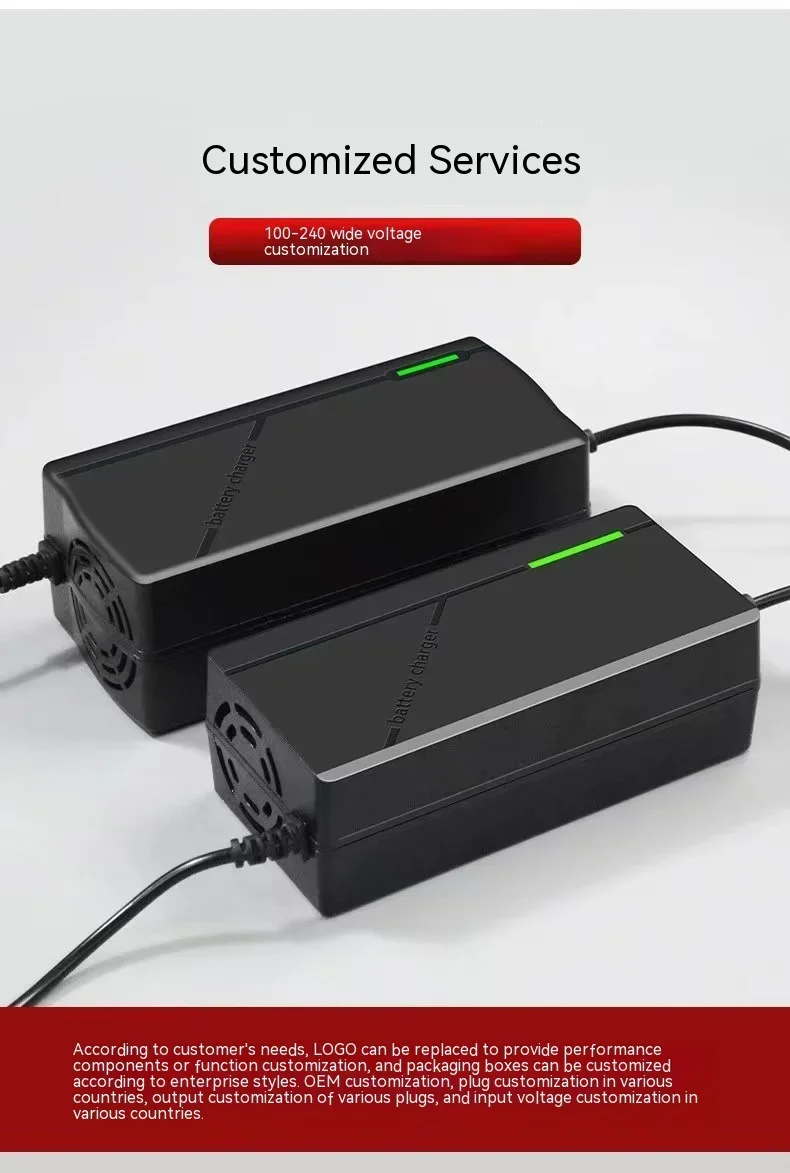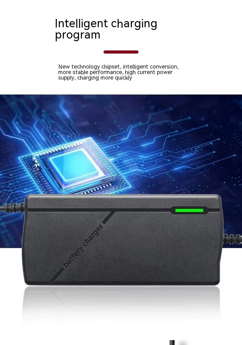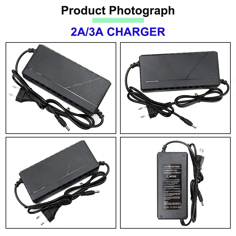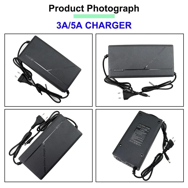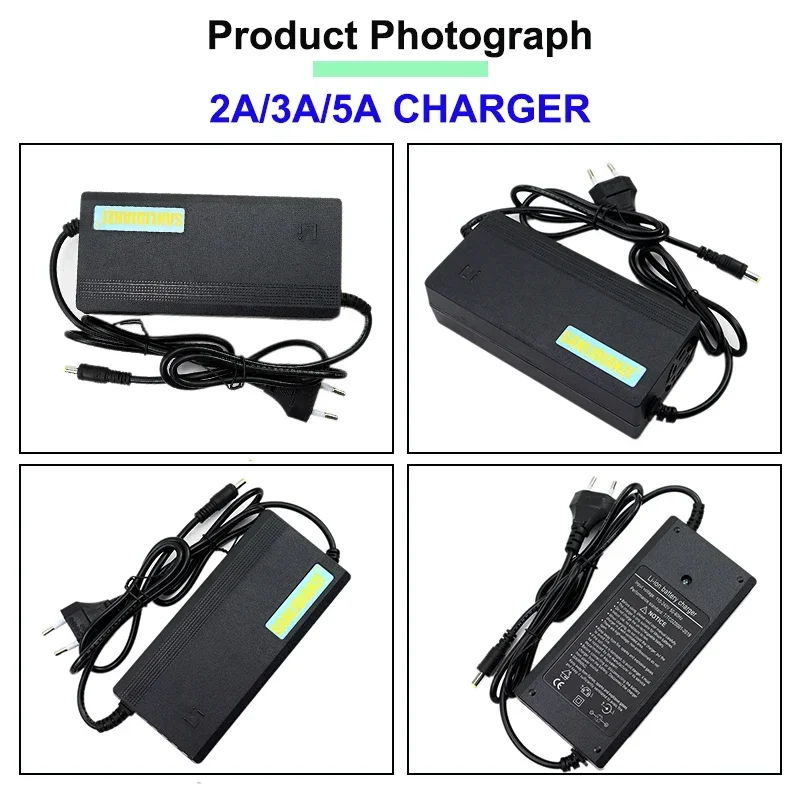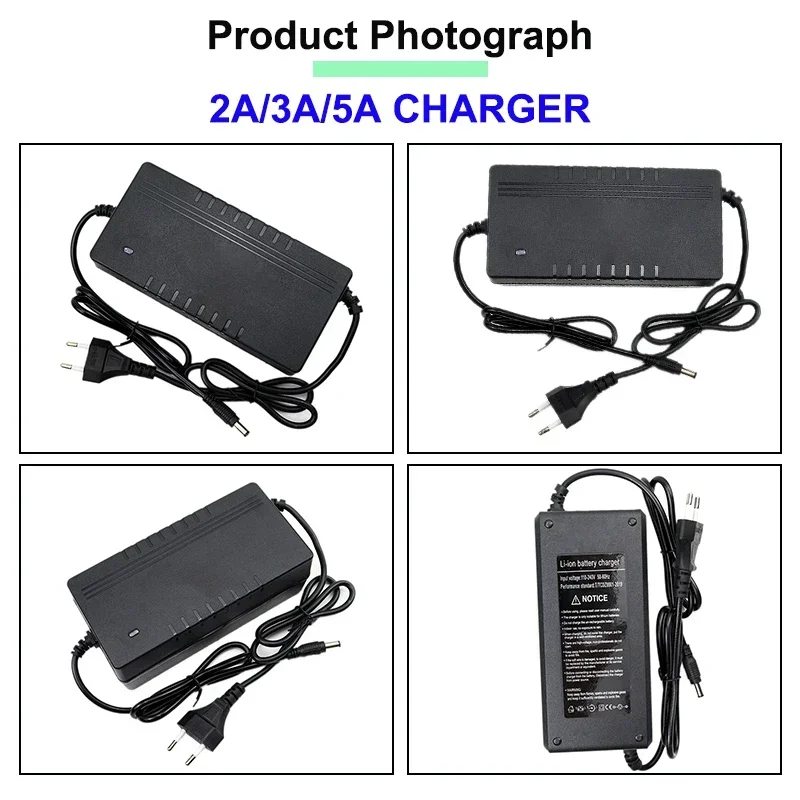 36V 48V 52V 60V 72V 2A 3A 5A charger 10S 13S 16S 20S lithium battery 42V 54.6V 58.8V 67.2V 84V 2A 3A 5A intelligent fast charging DC/Aviation/RCA/XLR/Triangular output plug EU/US/AU/UK input plug 100~240V AC, 50/60Hz